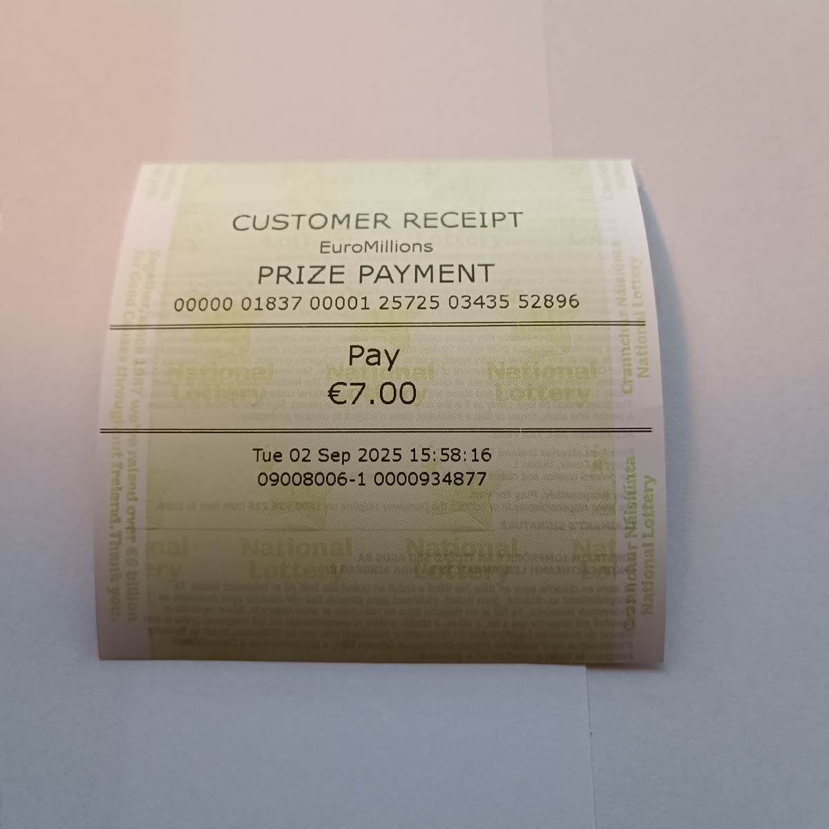For wins over €10,000, we will have to meet at the National Lottery Claims Department.