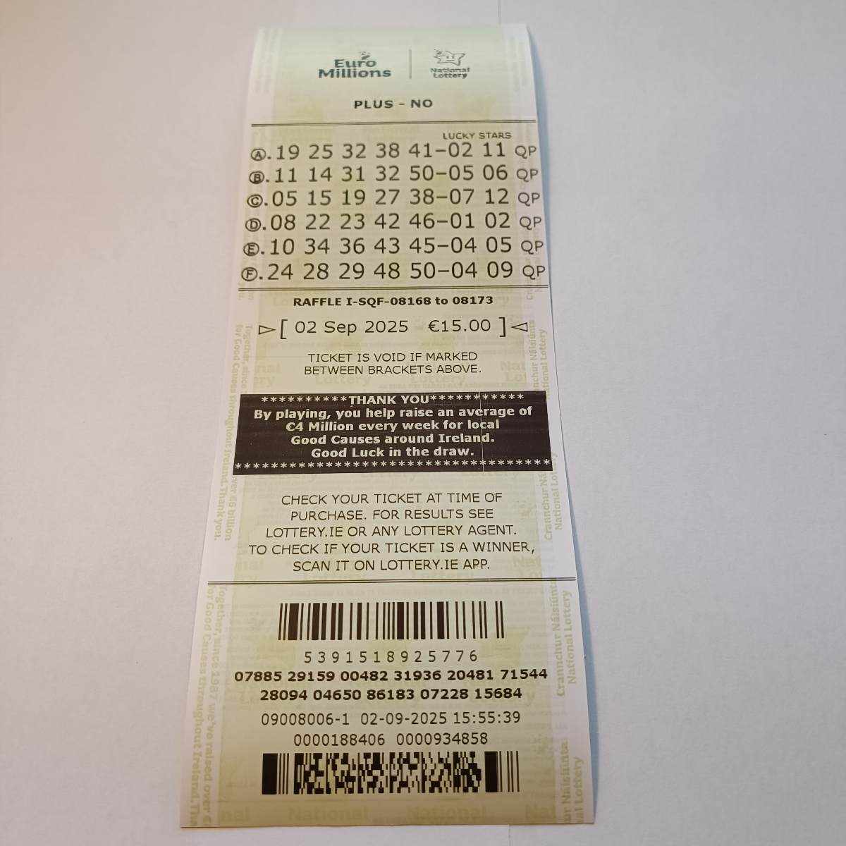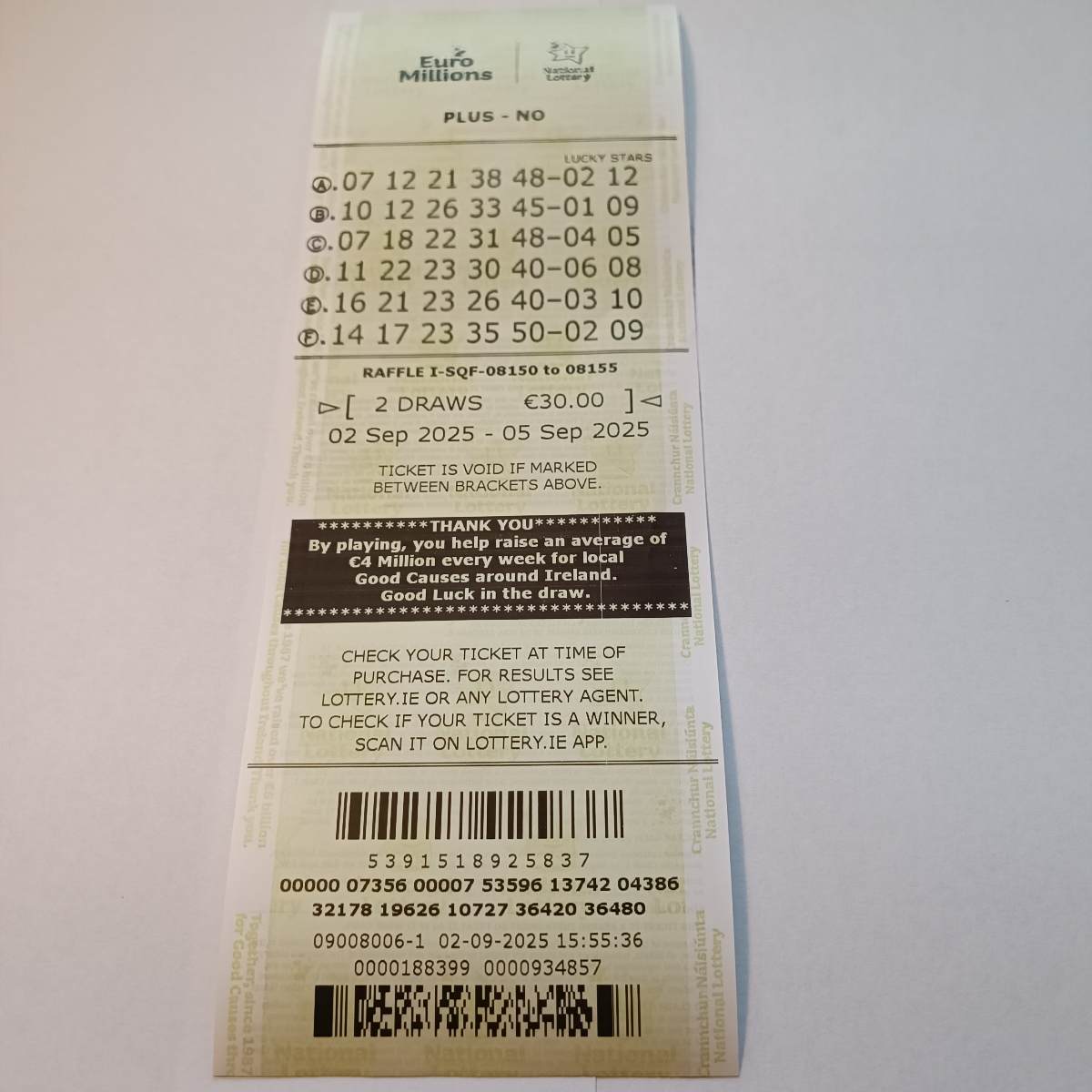 Euromillion Syndicate DP2 draw 02Sep25 cupons: