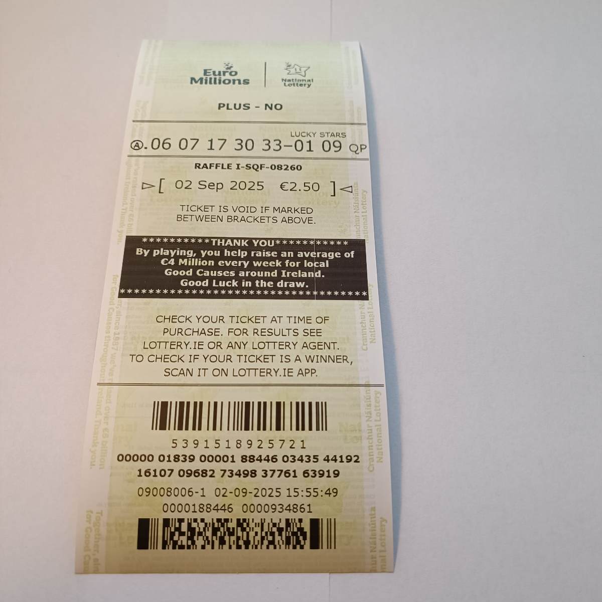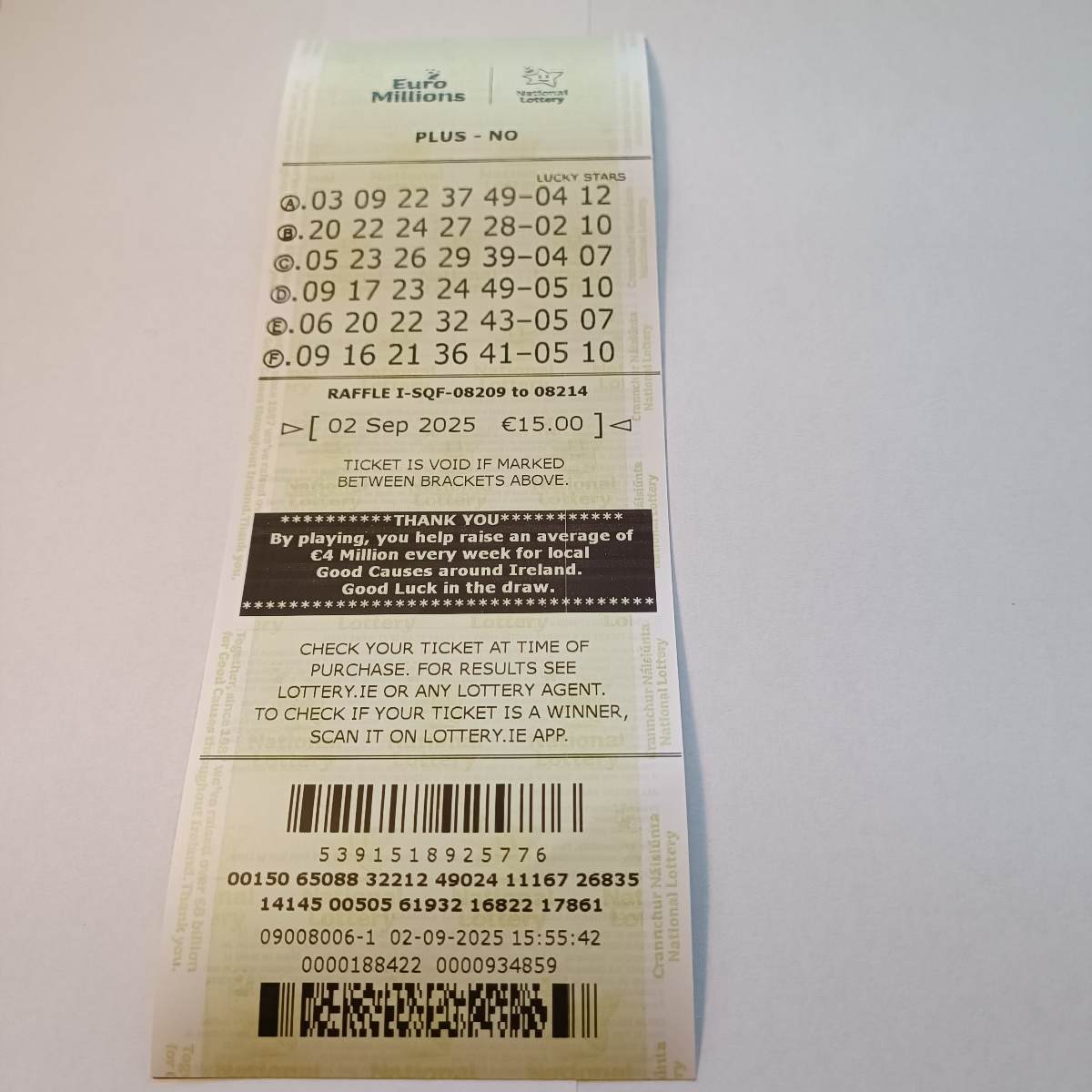 We play Euromillions every Tuesday. Please send me the money before Thursday as I need time to physically send the tickets to the shop. If you haven’t paid, you don’t play.