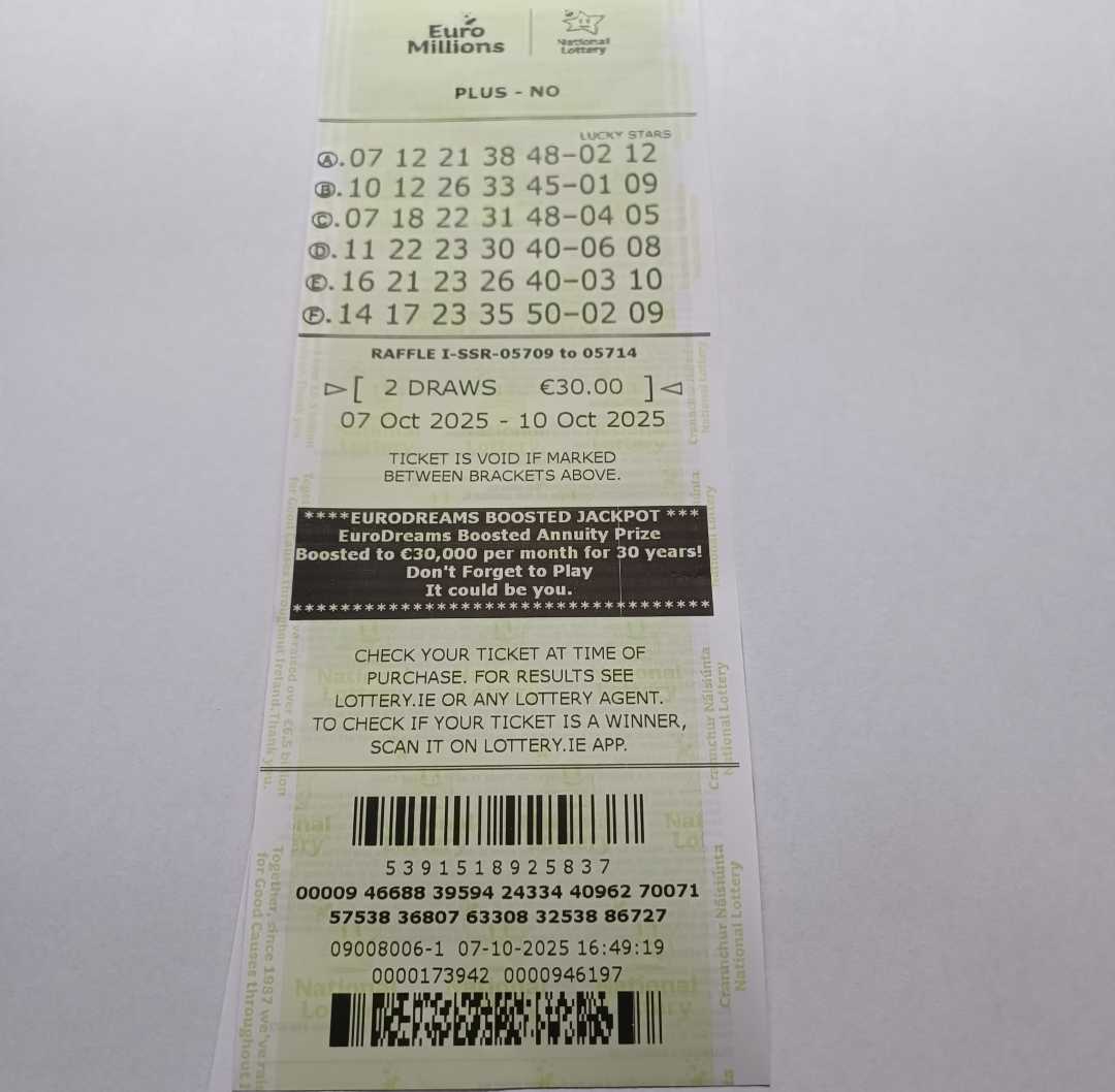 We play Euromillions every Tuesday. Please send me the money before Thursday as I need time to physically send the tickets to the shop. If you haven’t paid, you don’t play.