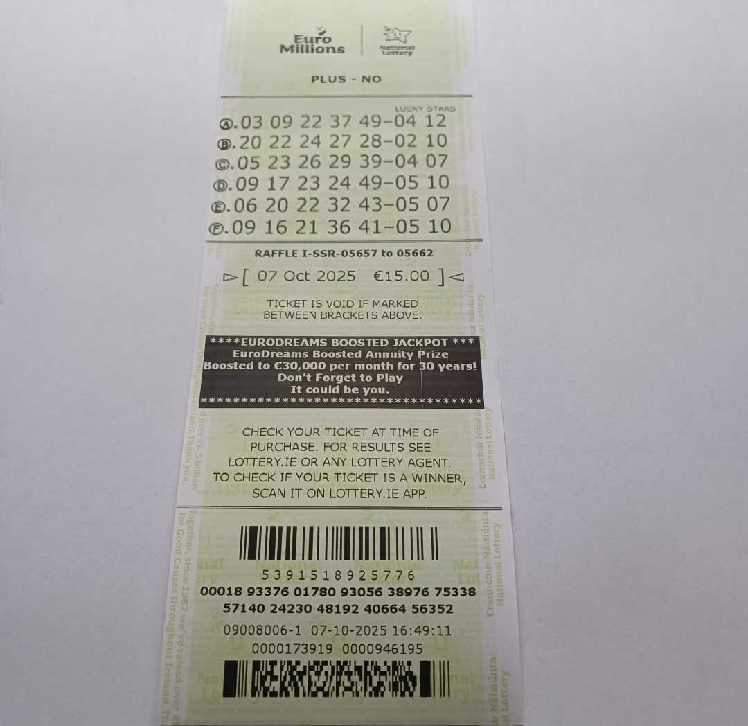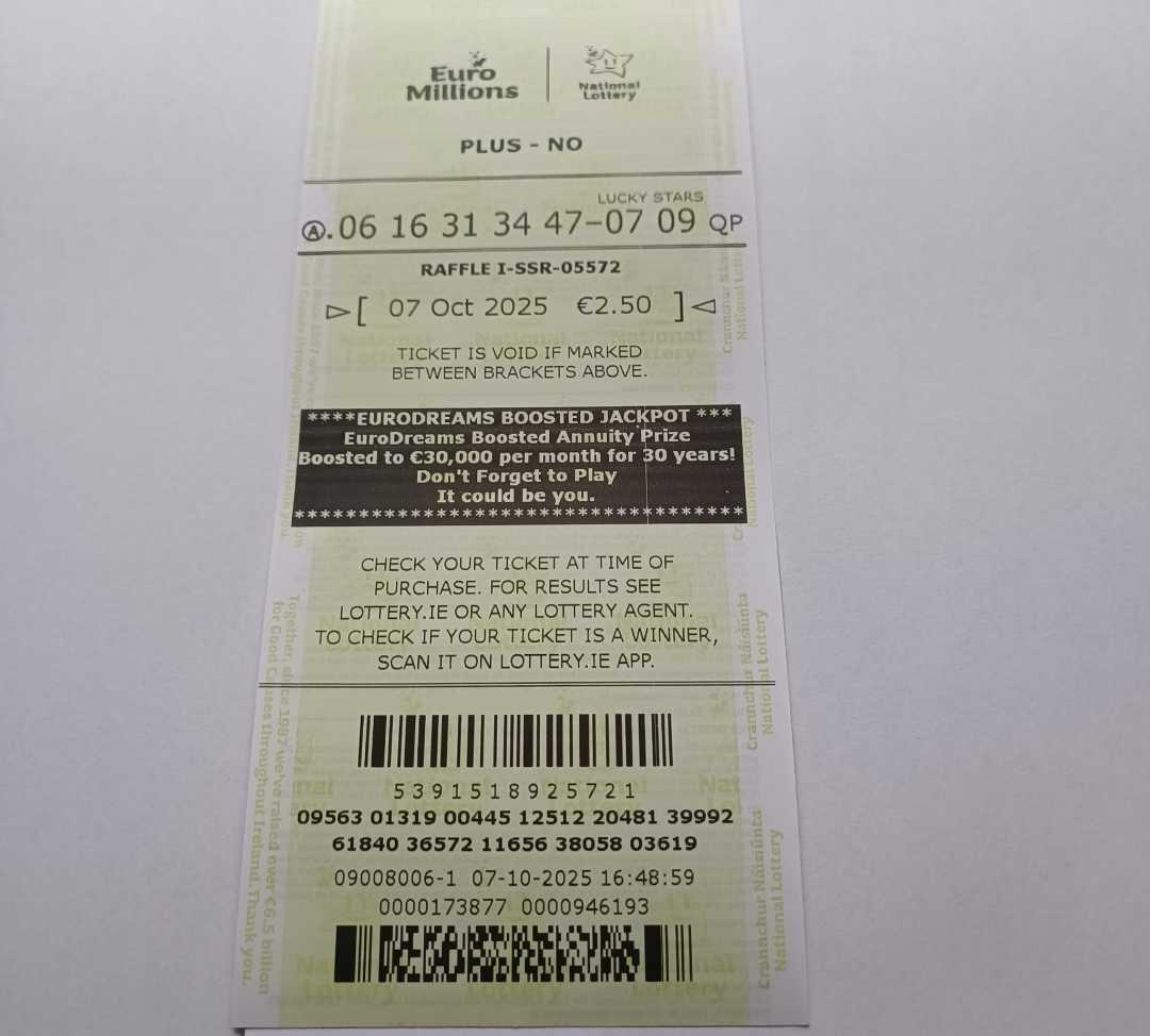 For wins over €10,000, we will have to meet at the National Lottery Claims Department.