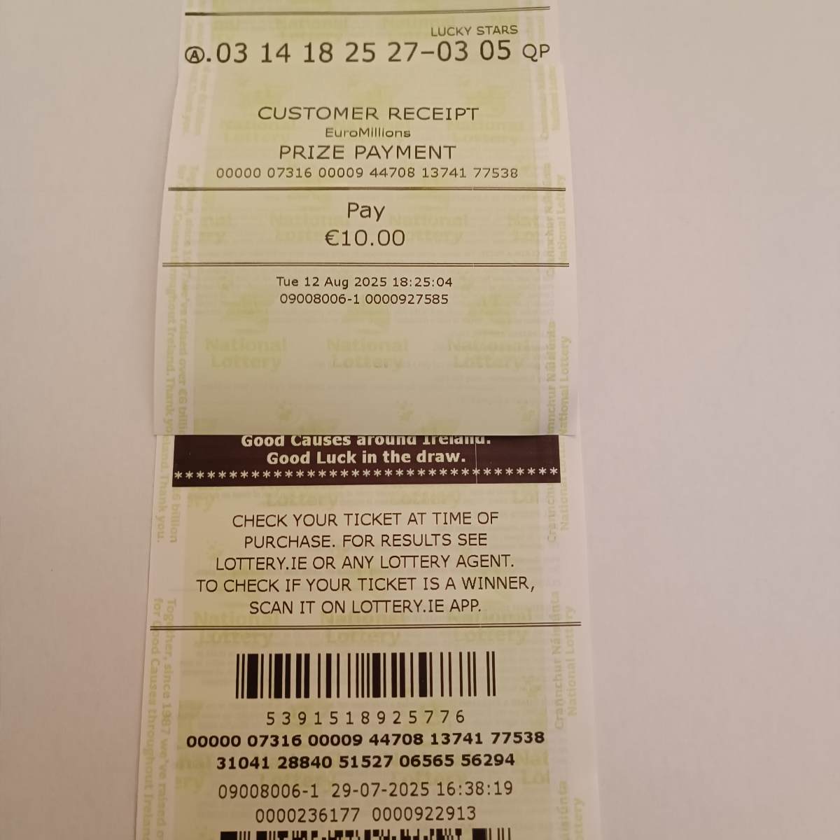 Image submitted by Lotto Euromillions Syndicate for the draw on 12 August 2025 – Coupon 10