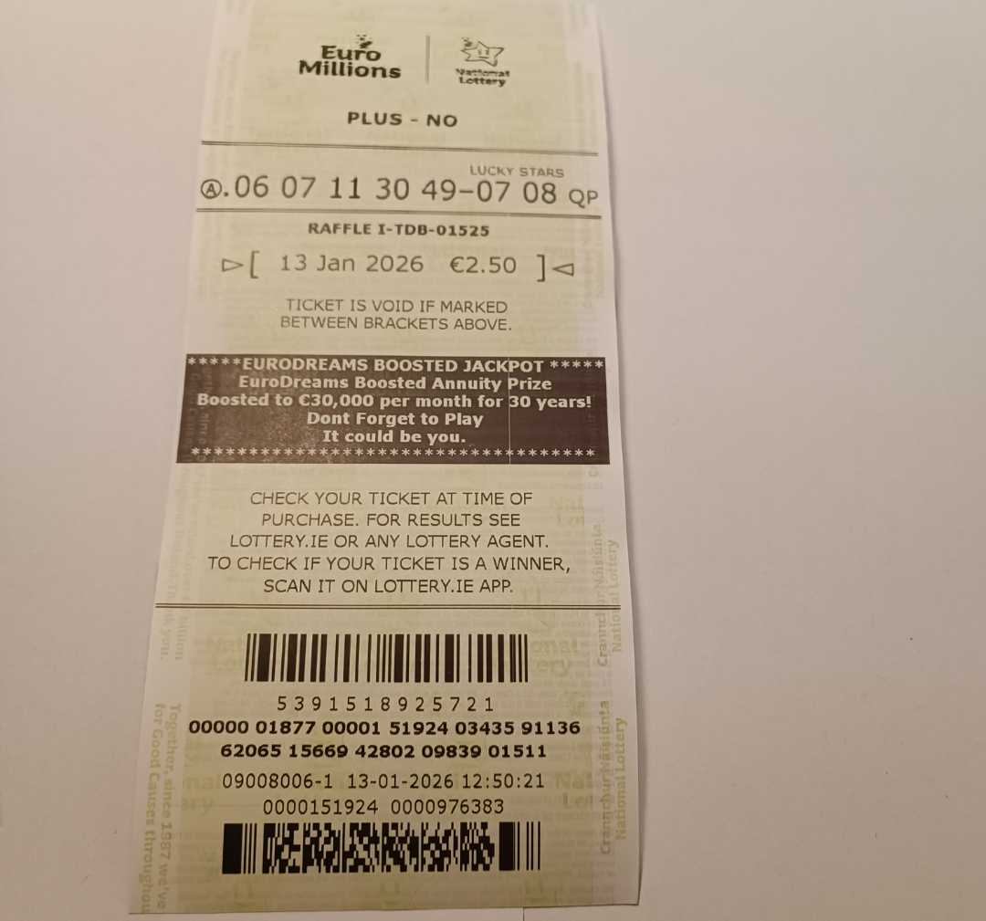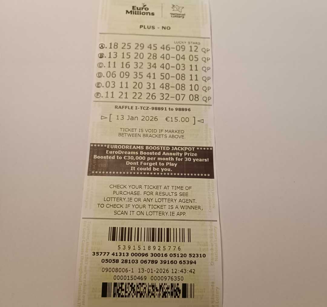 For wins over €10,000, we will have to meet at the National Lottery Claims Department.