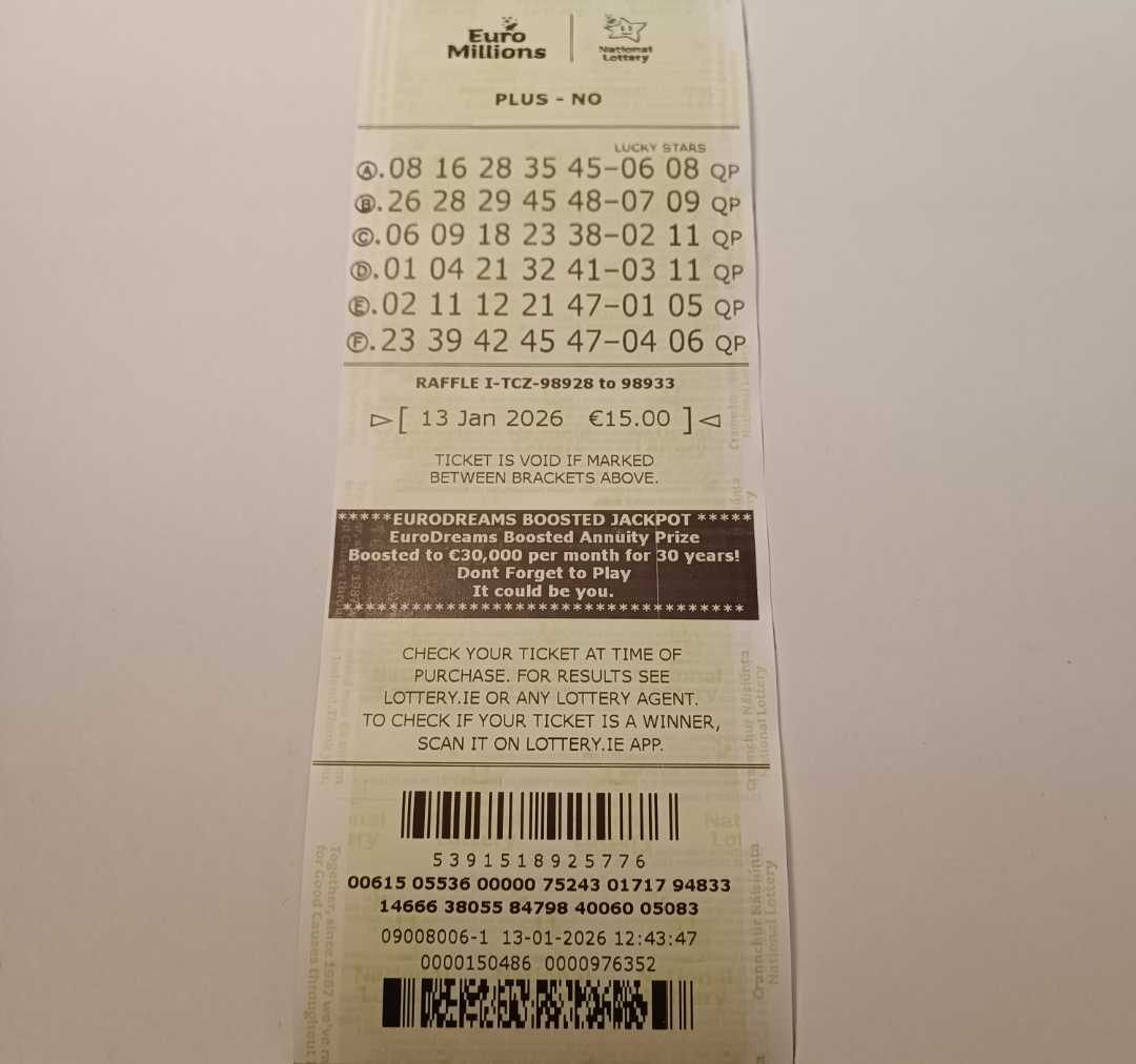 We play Euromillions every Tuesday. Please send me the money before Thursday as I need time to physically send the tickets to the shop. If you haven’t paid, you don’t play.