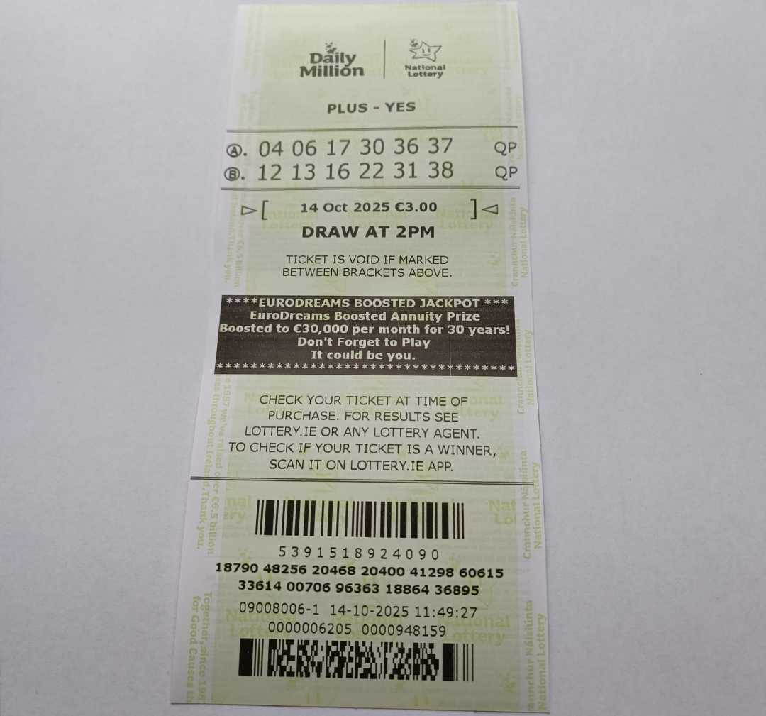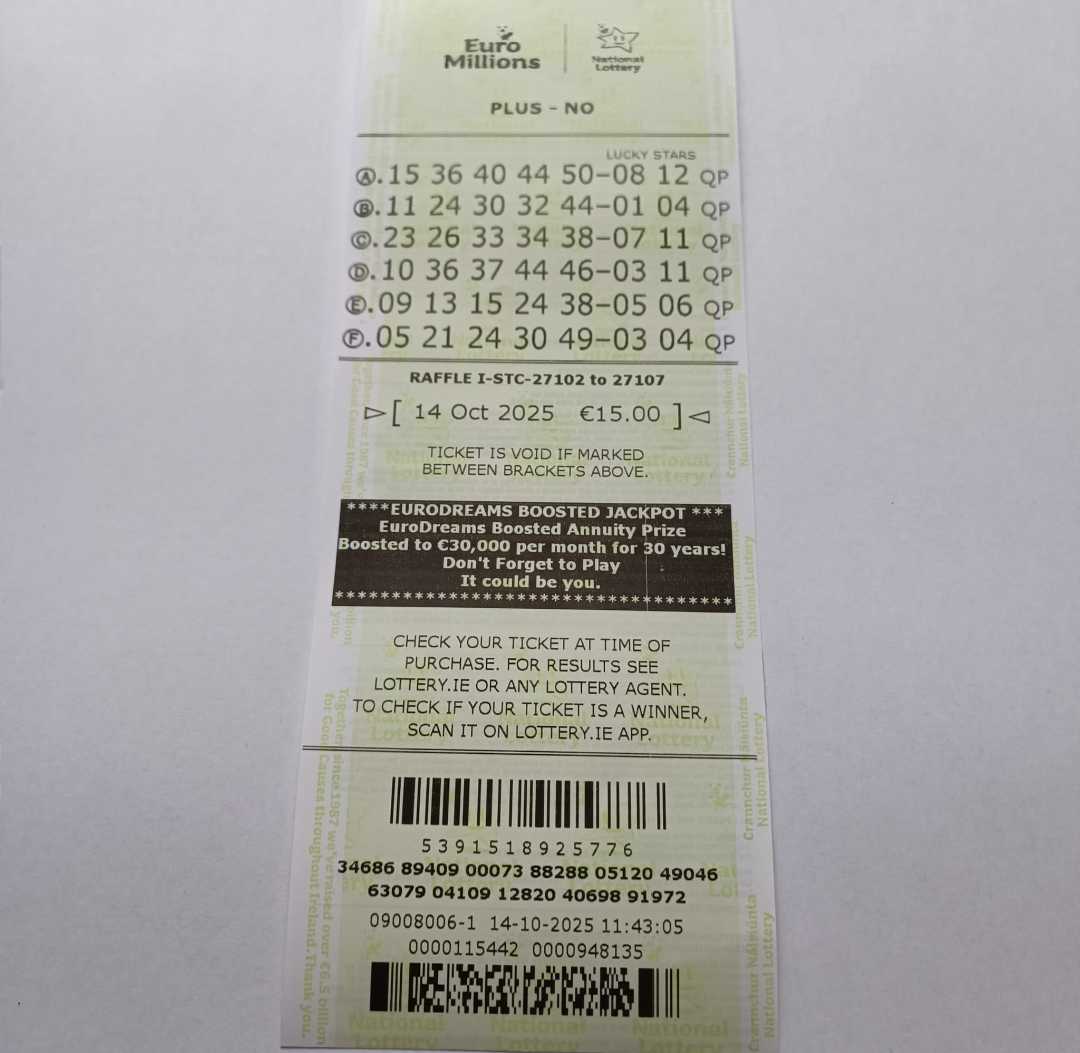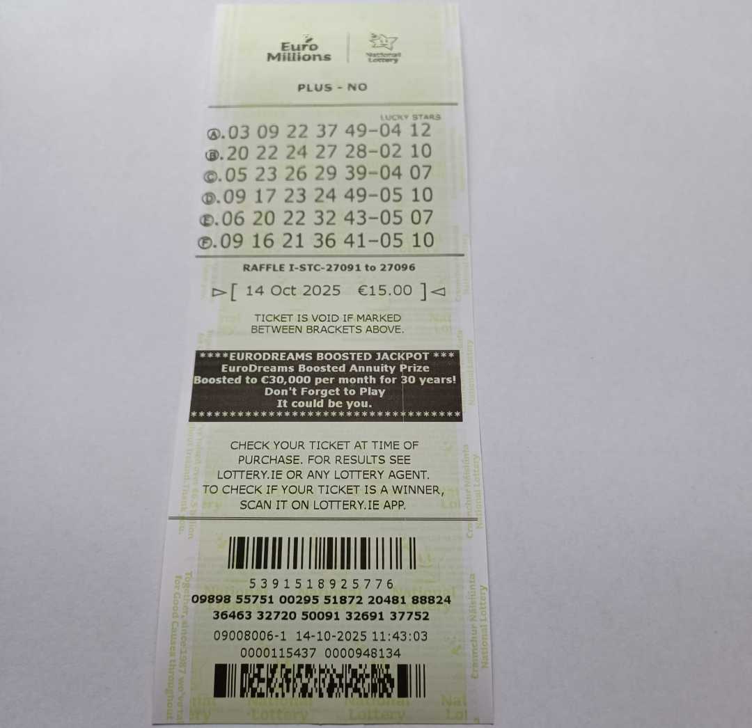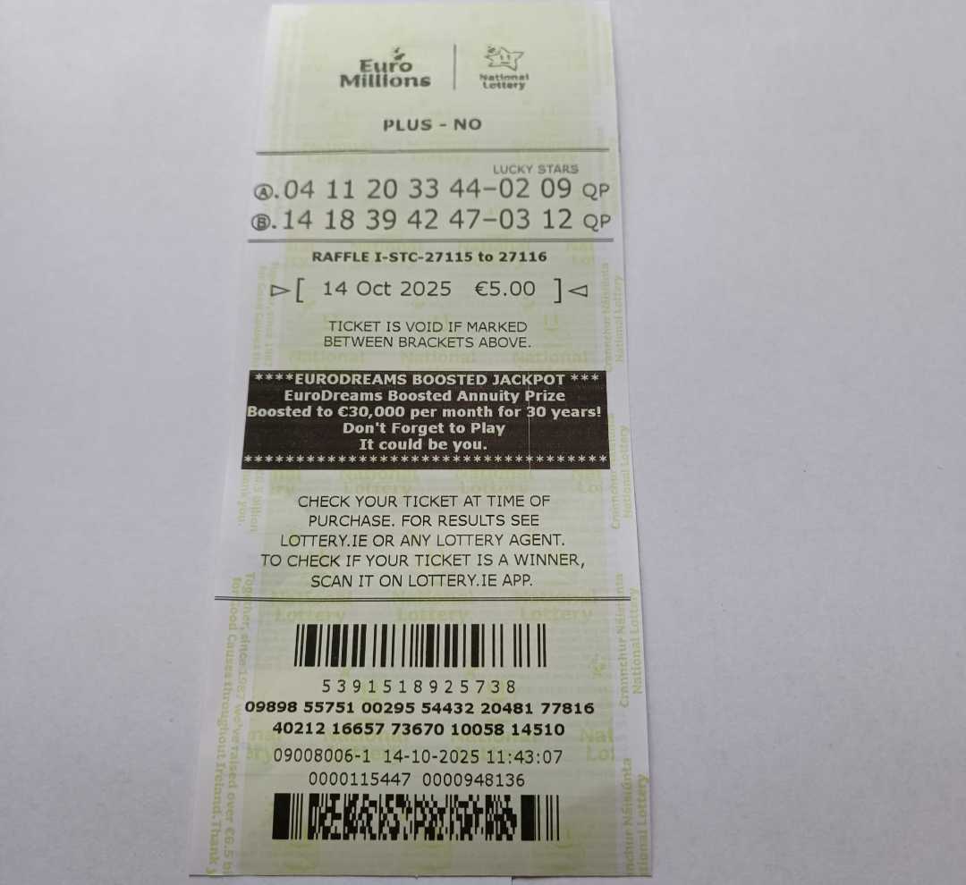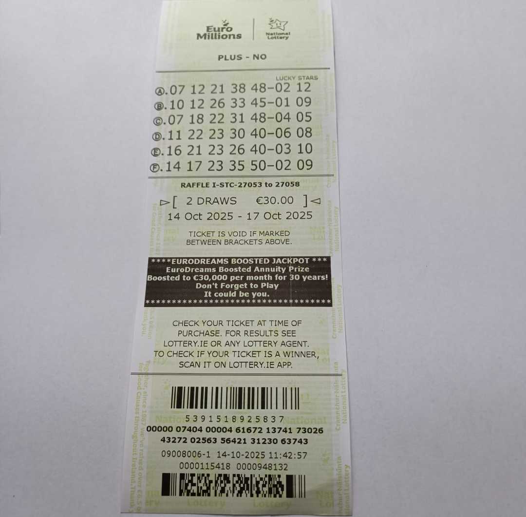 For wins over €10,000, we will have to meet at the National Lottery Claims Department.