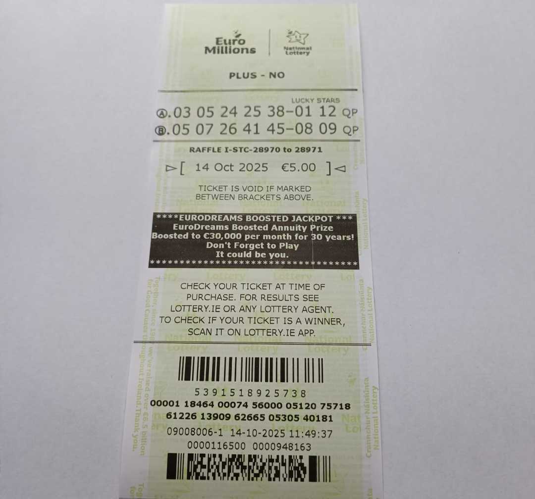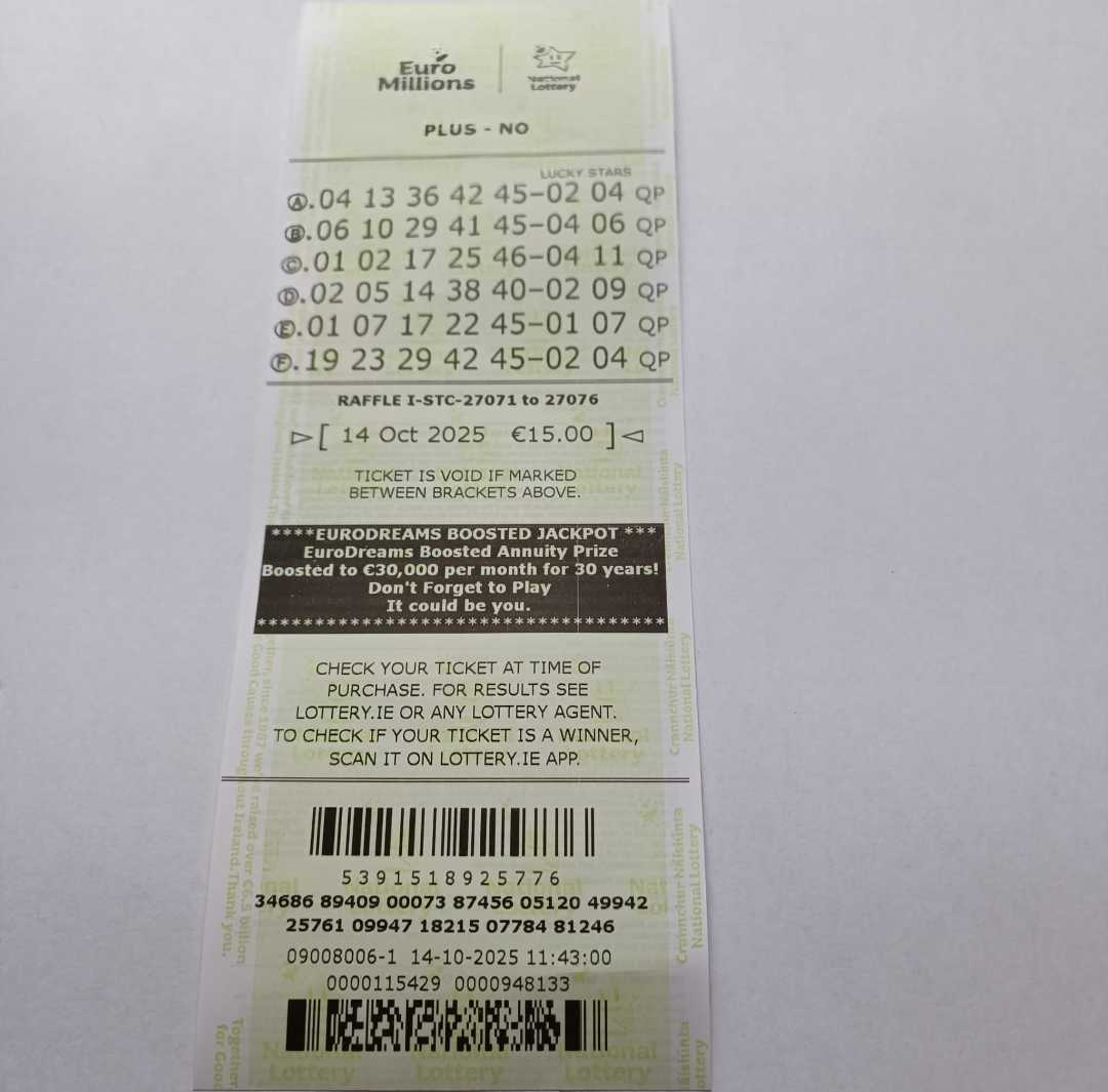We play Euromillions every Tuesday. Please send me the money before Thursday as I need time to physically send the tickets to the shop. If you haven’t paid, you don’t play.