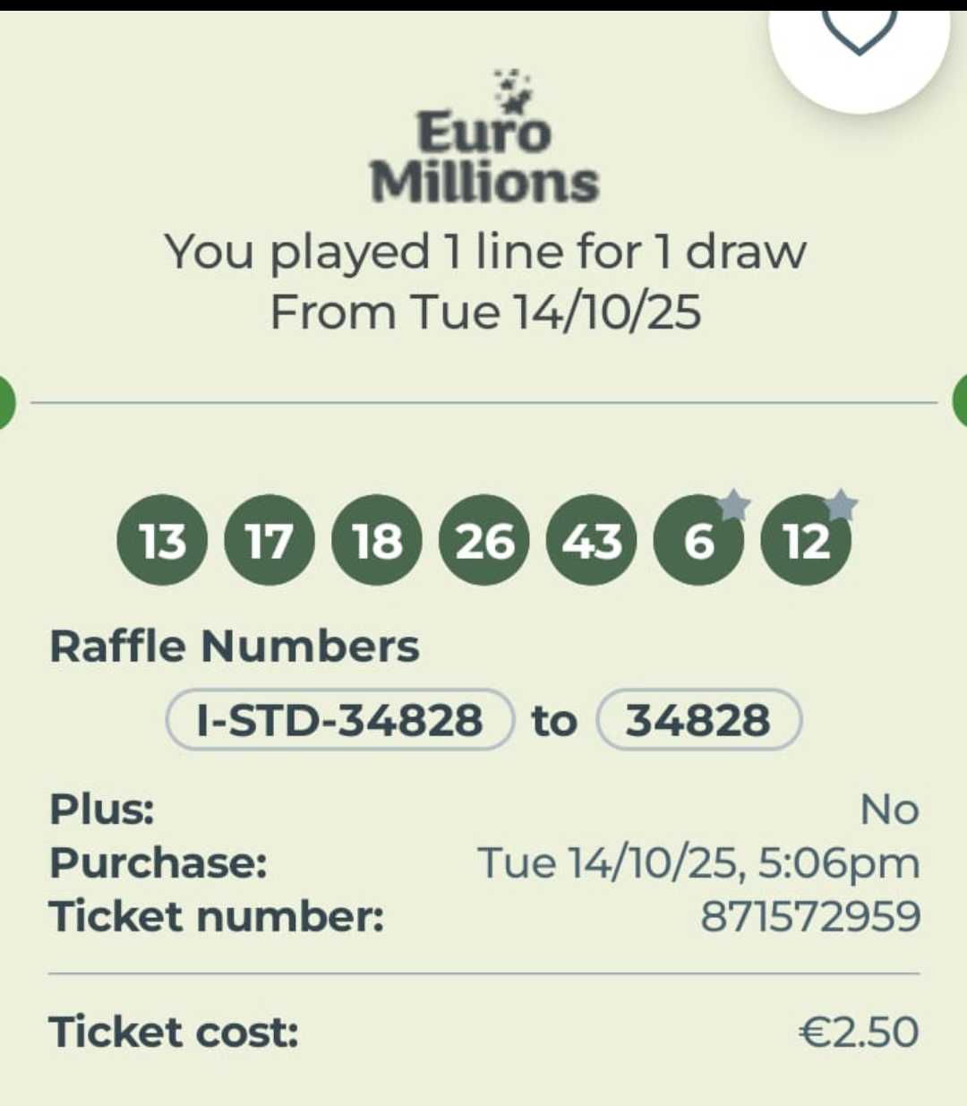 DP2 Euromillions Syndicate Draw 14.10.2025