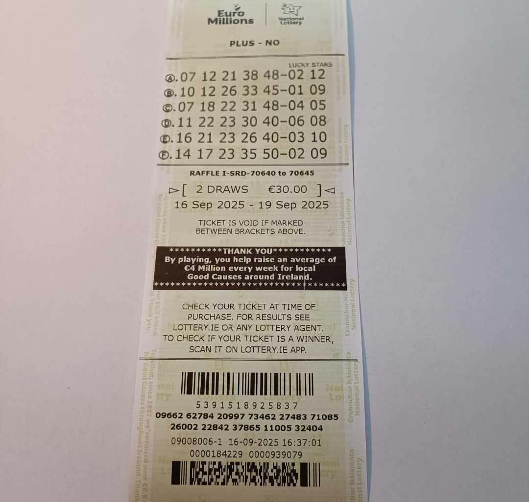 We play Euromillions every Tuesday. Please send me the money before Thursday as I need time to physically send the tickets to the shop. If you haven’t paid, you don’t play.