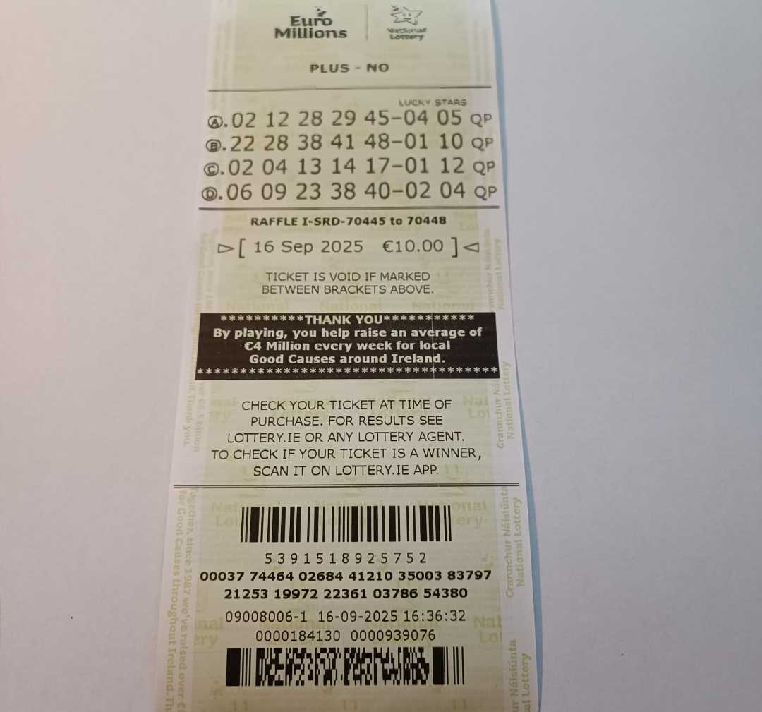 For wins over €10,000, we will have to meet at the National Lottery Claims Department.