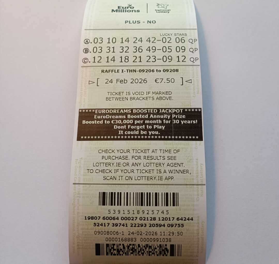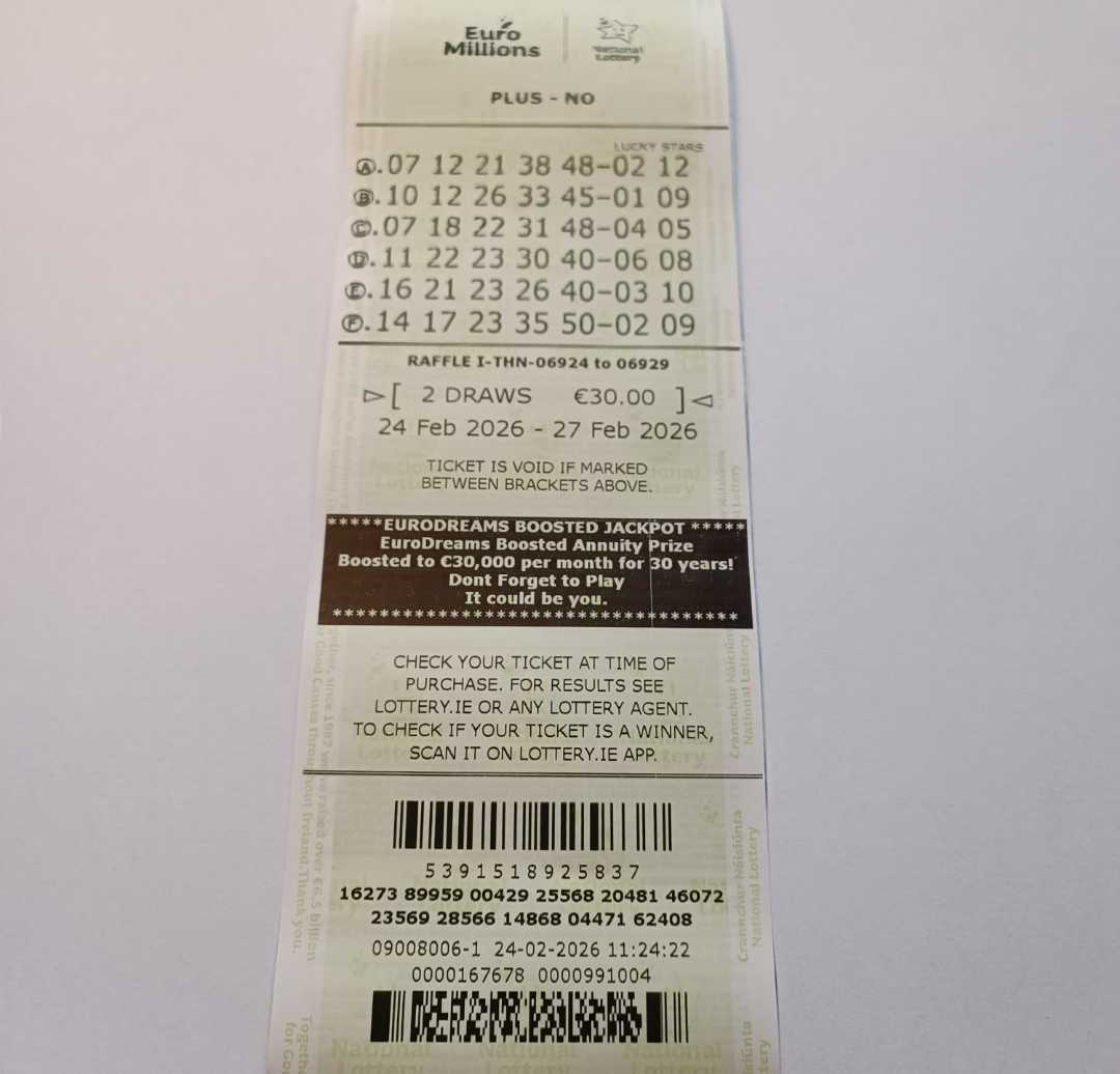 For wins over €10,000, we will have to meet at the National Lottery Claims Department.