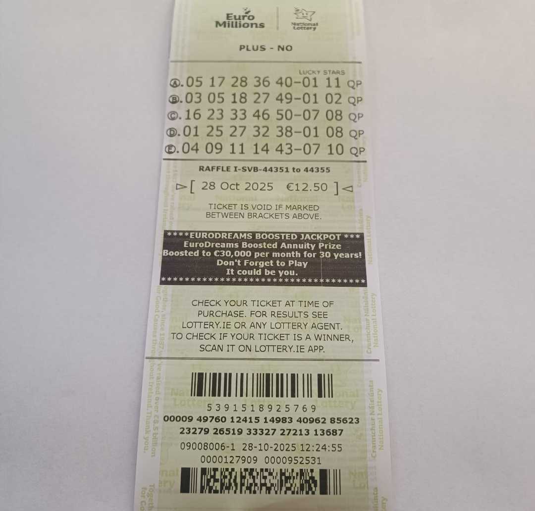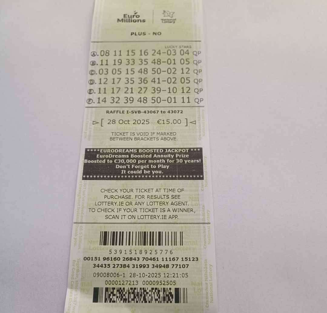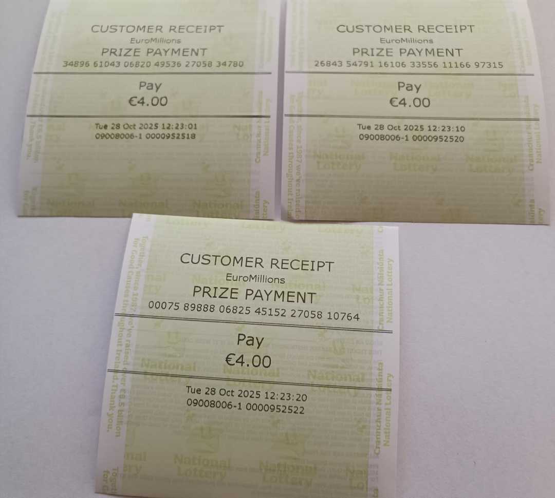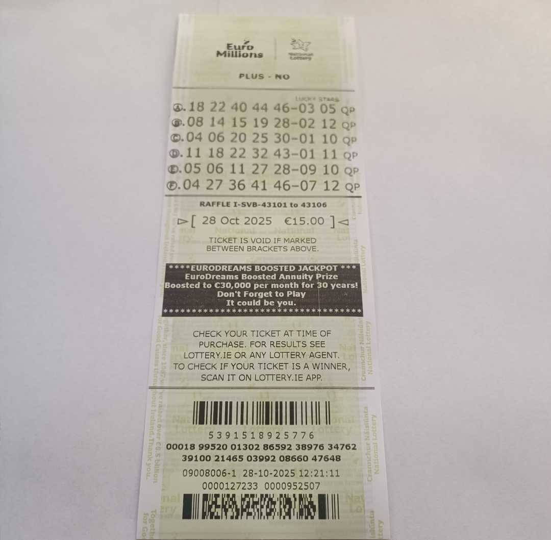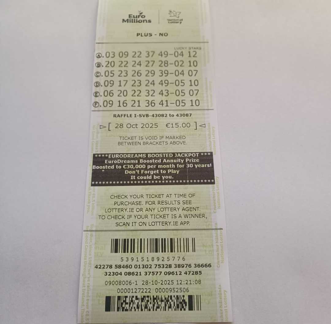 For wins over €10,000, we will have to meet at the National Lottery Claims Department.