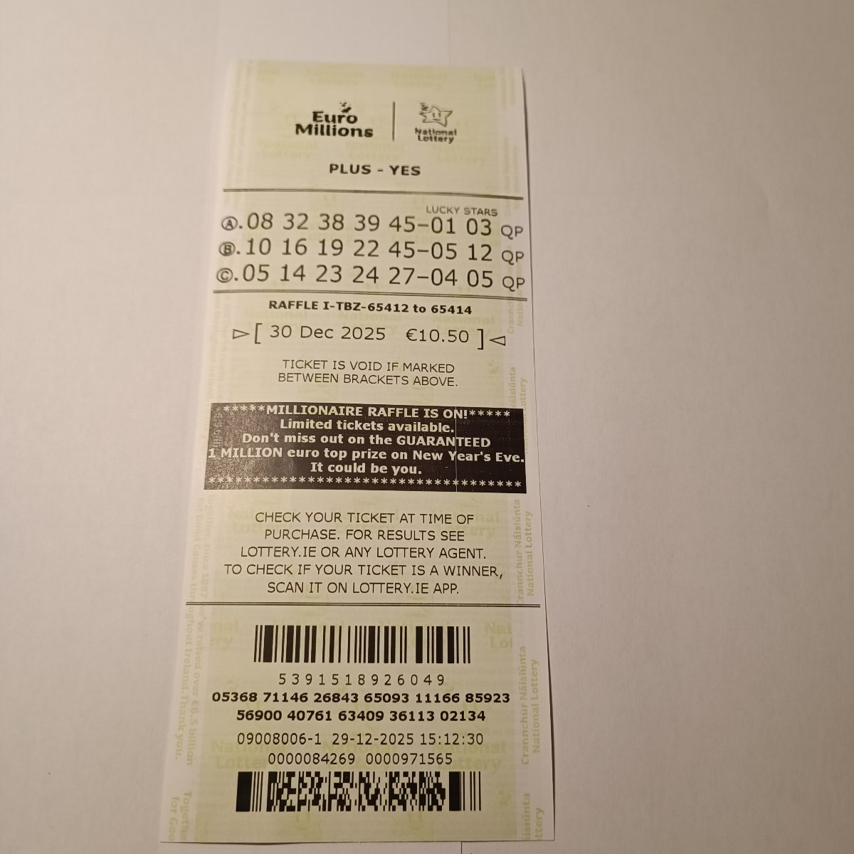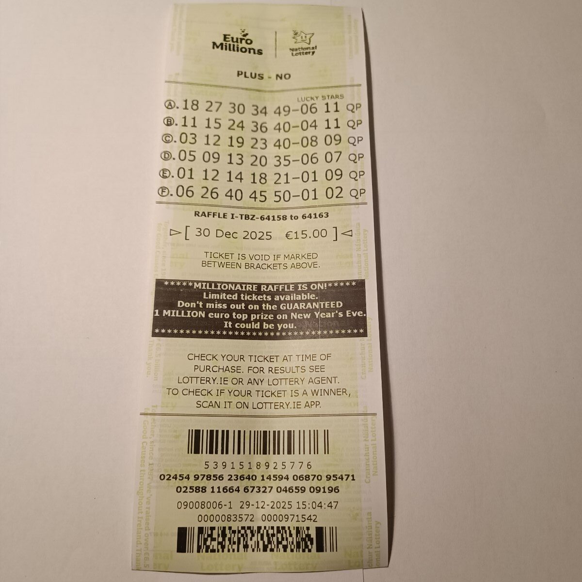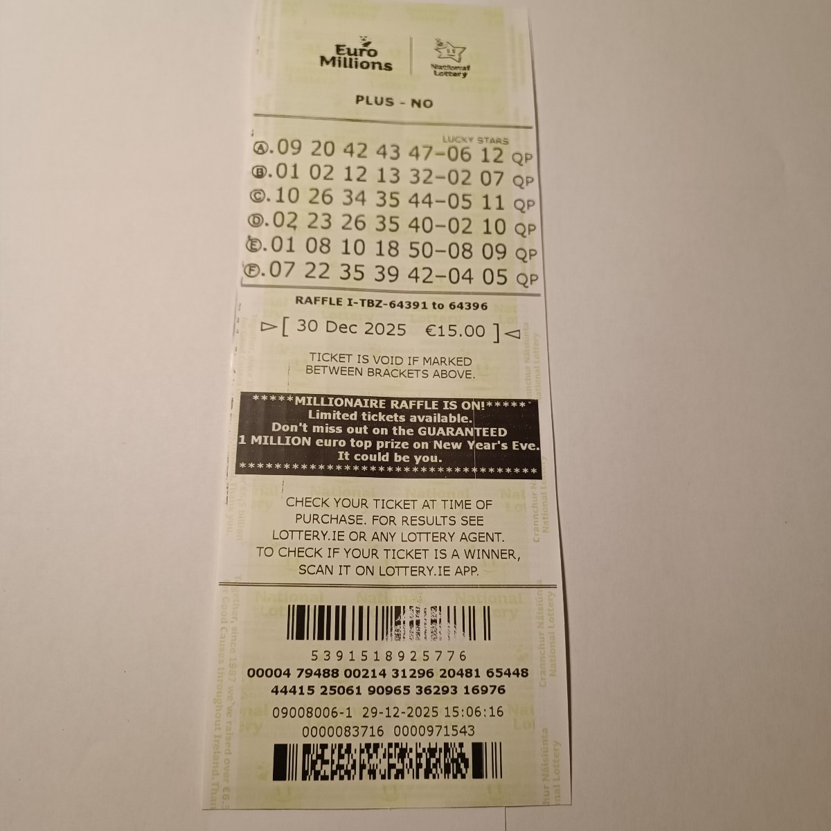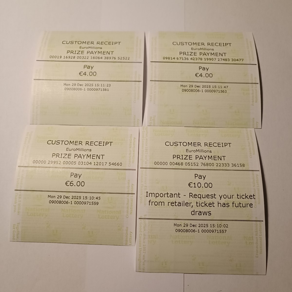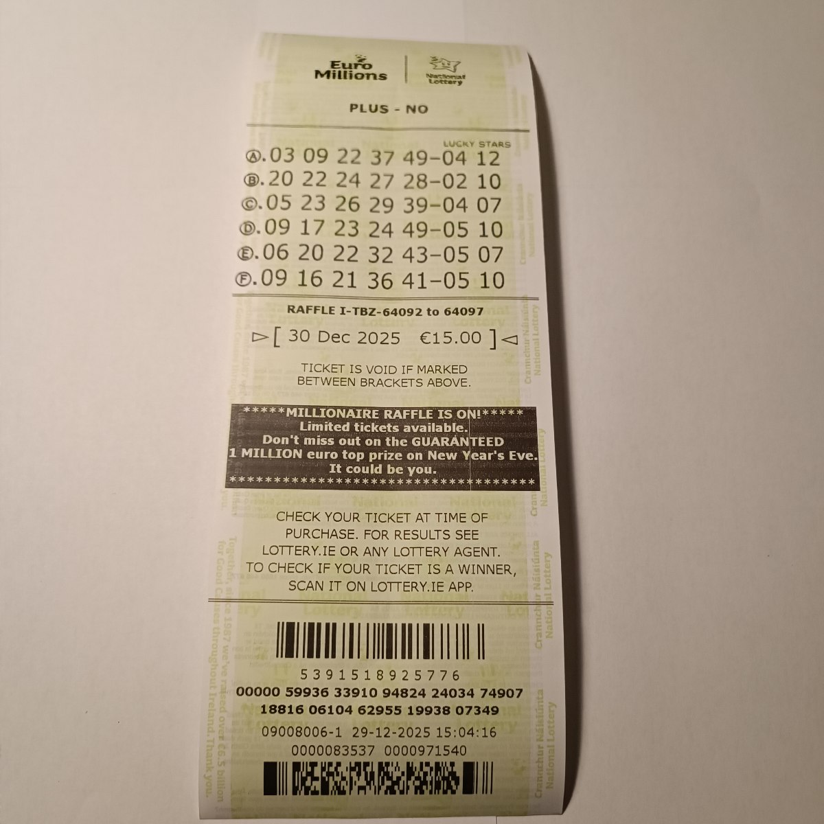 For wins over €10,000, we will have to meet at the National Lottery Claims Department.