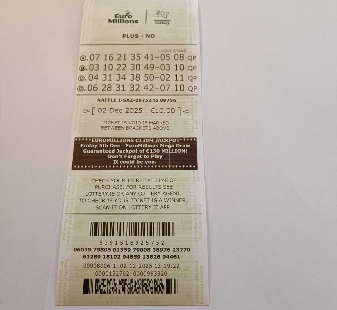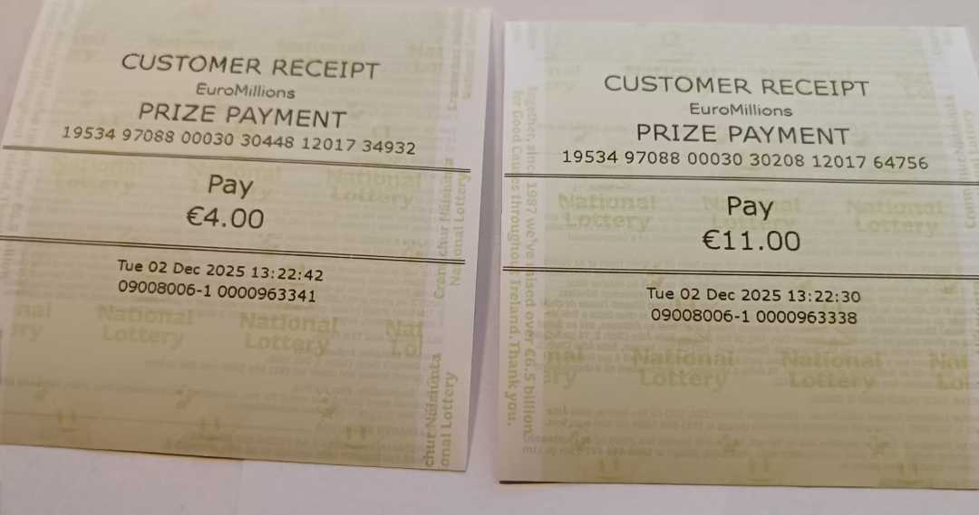 For wins over €10,000, we will have to meet at the National Lottery Claims Department.