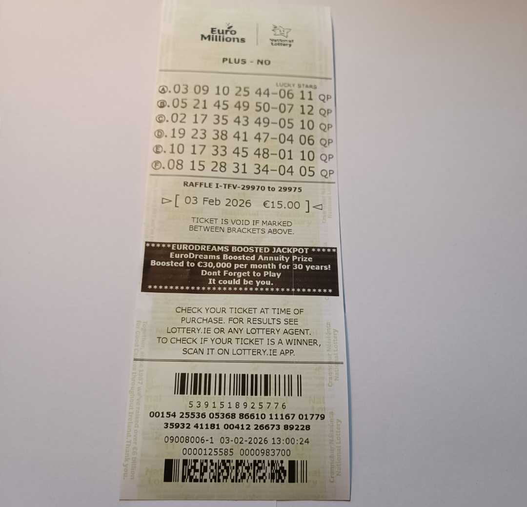 We play Euromillions every Tuesday. Please send me the money before Monday as I need time to physically send the tickets to the shop. If you haven’t paid, you don’t play.