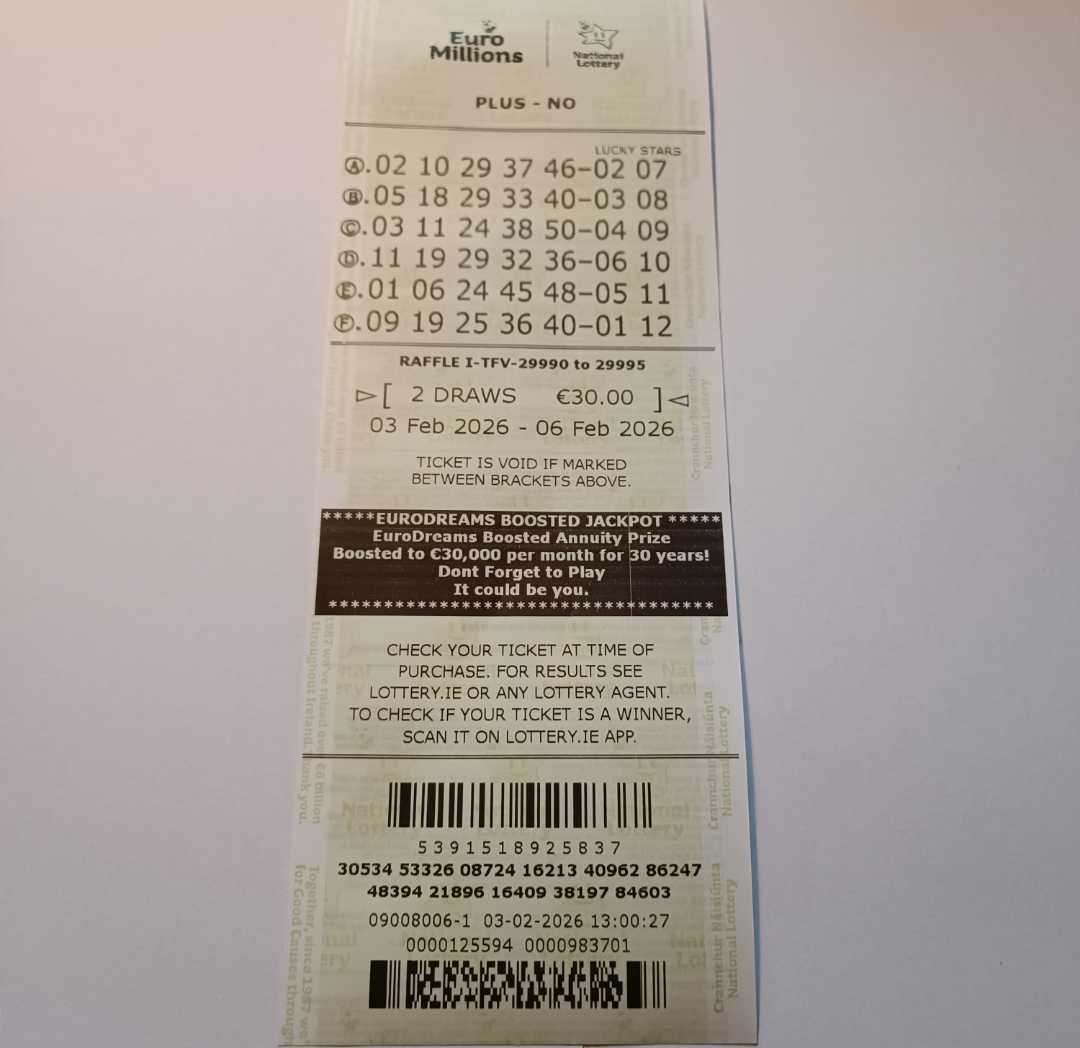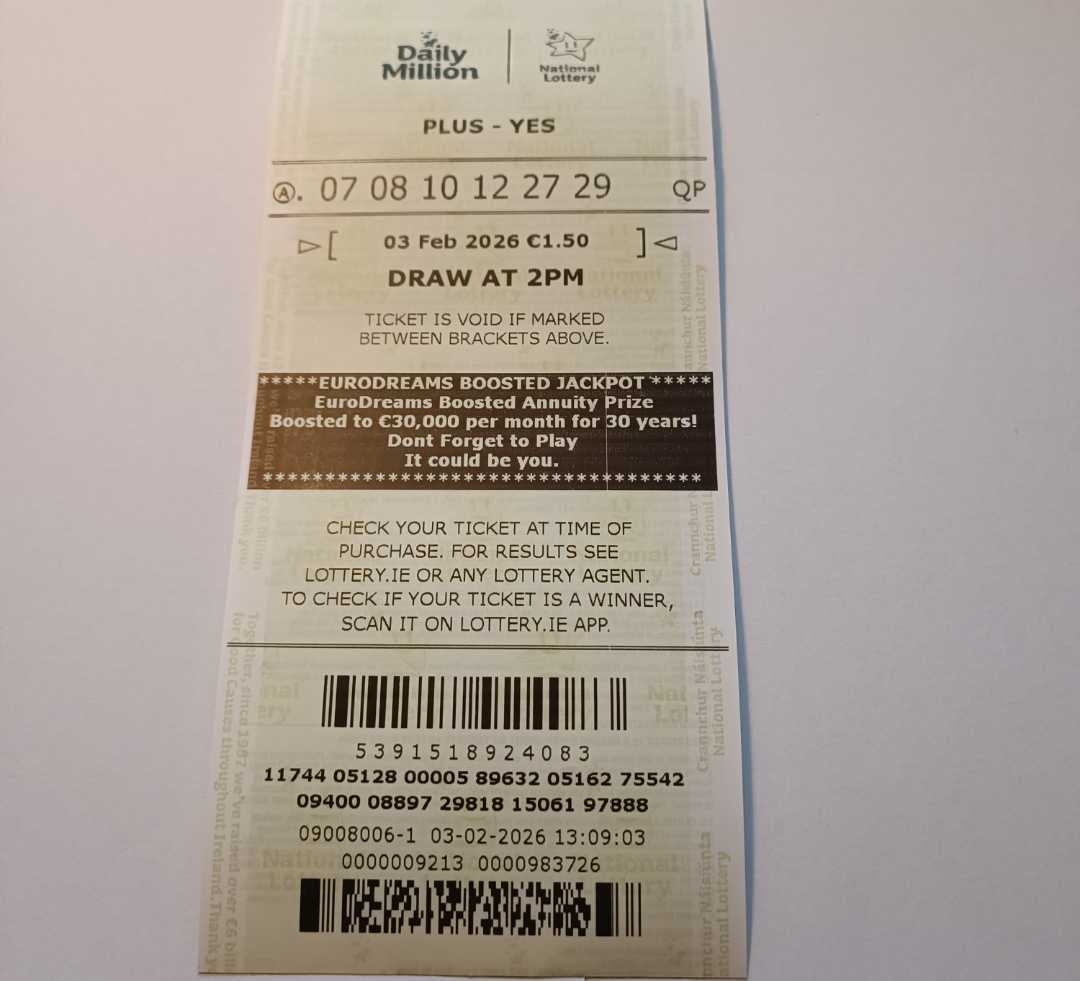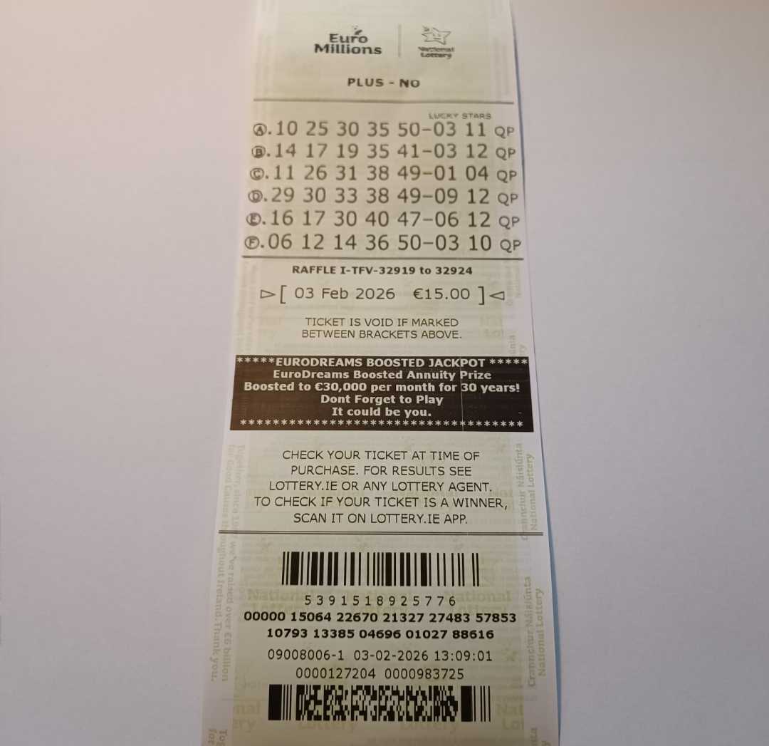 For wins over €10,000, we will have to meet at the National Lottery Claims Department.