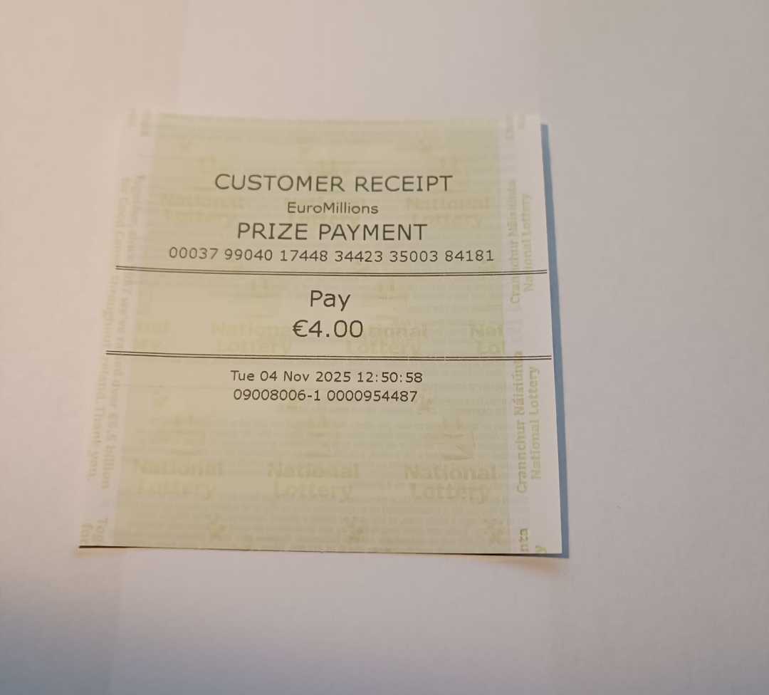 For wins over €10,000, we will have to meet at the National Lottery Claims Department.