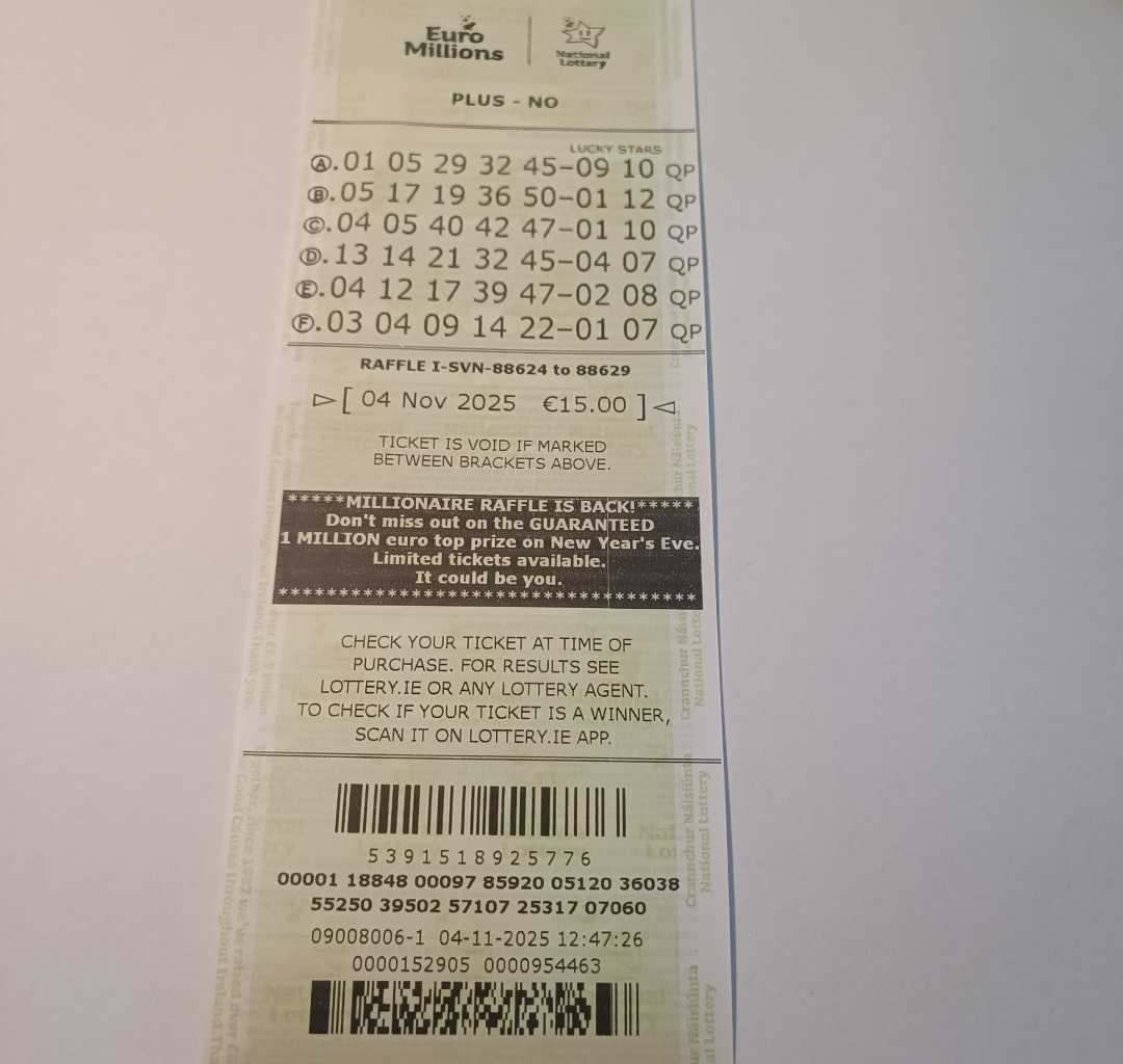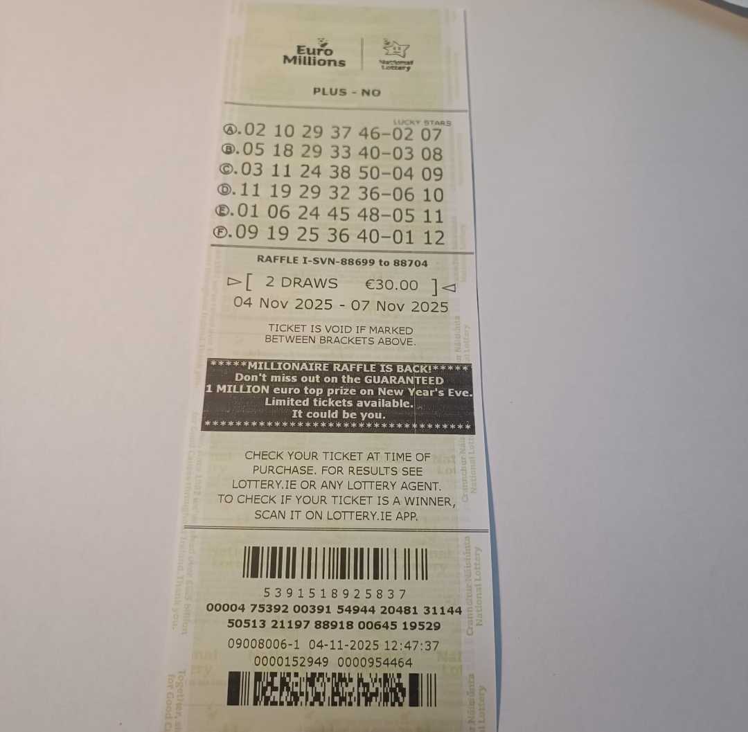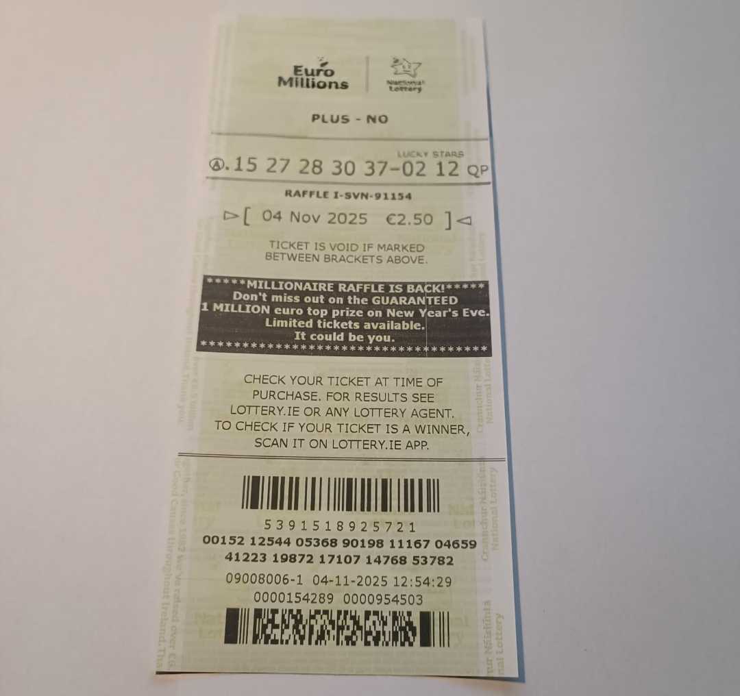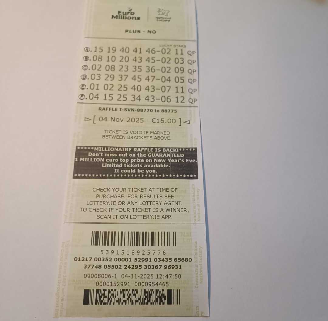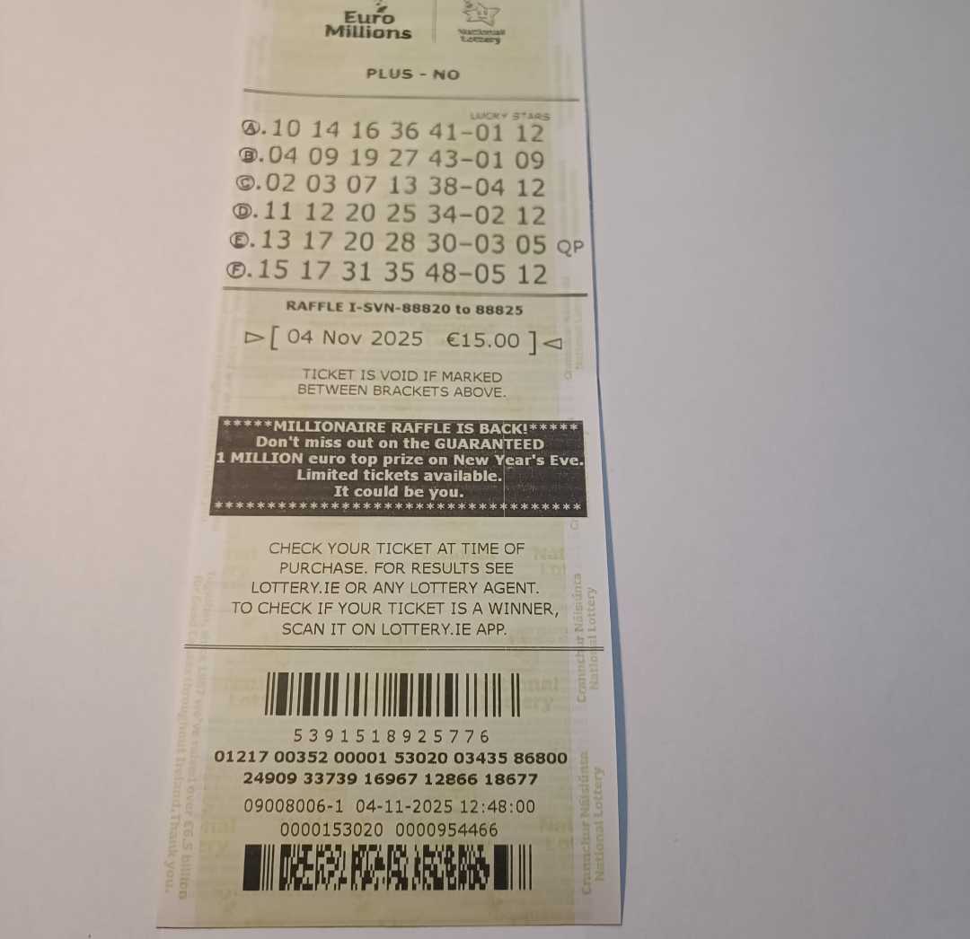 We play Euromillions every Tuesday. Please send me the money before Monday as I need time to physically send the tickets to the shop. If you haven’t paid, you don’t play.