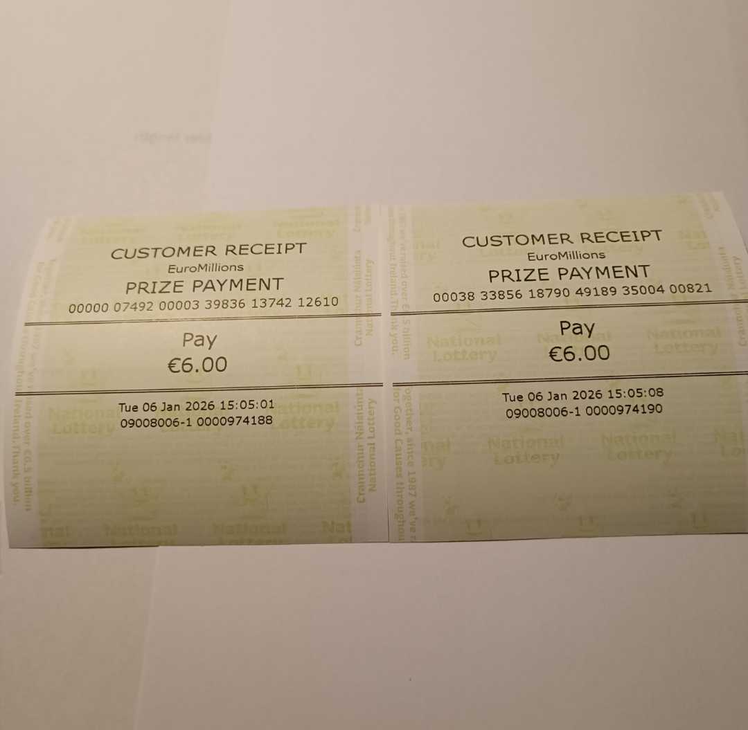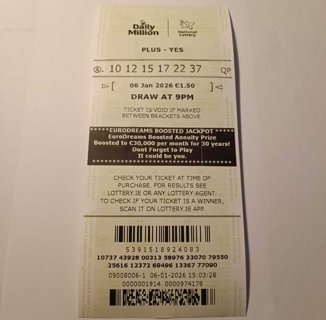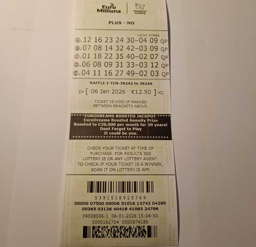 We play Euromillions every Tuesday. Please send me the money before Monday as I need time to physically send the tickets to the shop. If you haven’t paid, you don’t play.