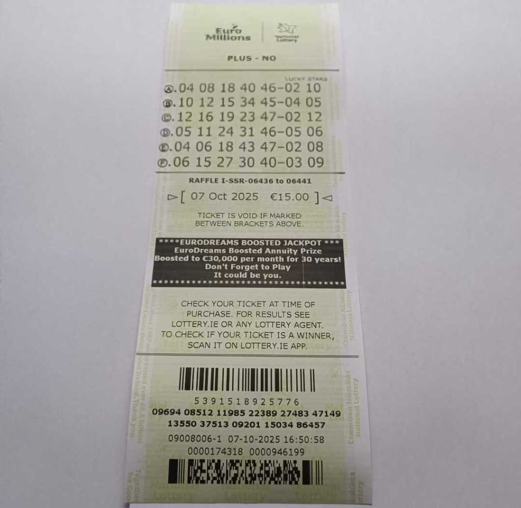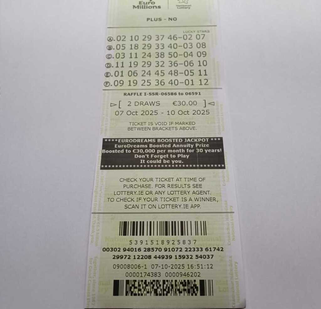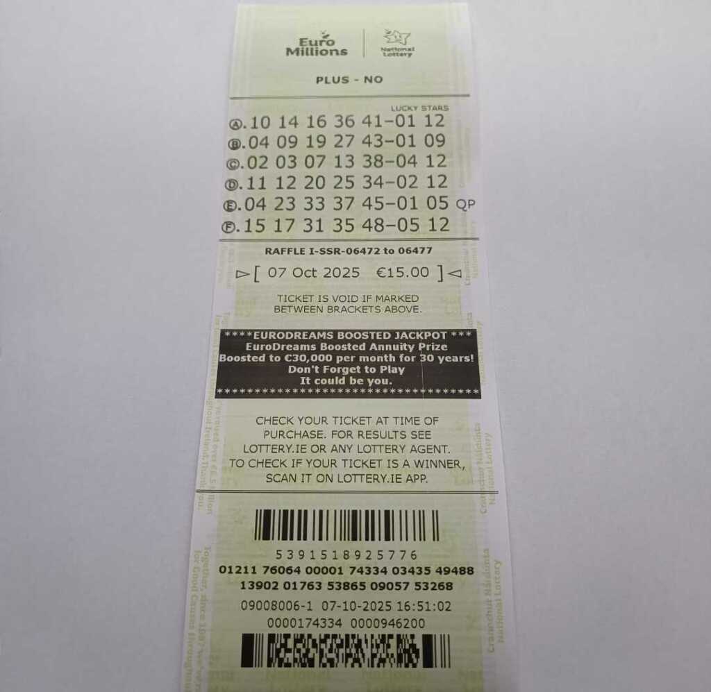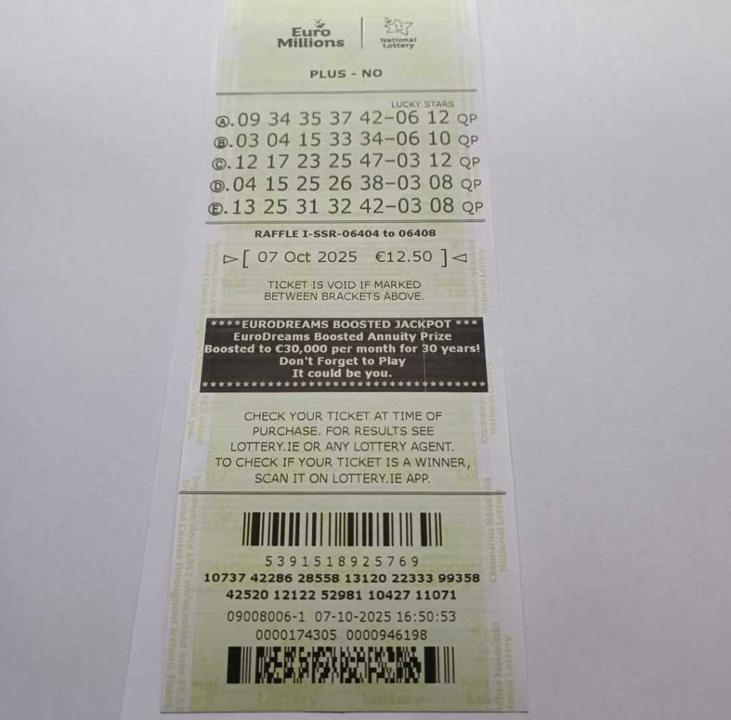 We play Euromillions every Tuesday. Please send me the money before Monday as I need time to physically send the tickets to the shop. If you haven’t paid, you don’t play.