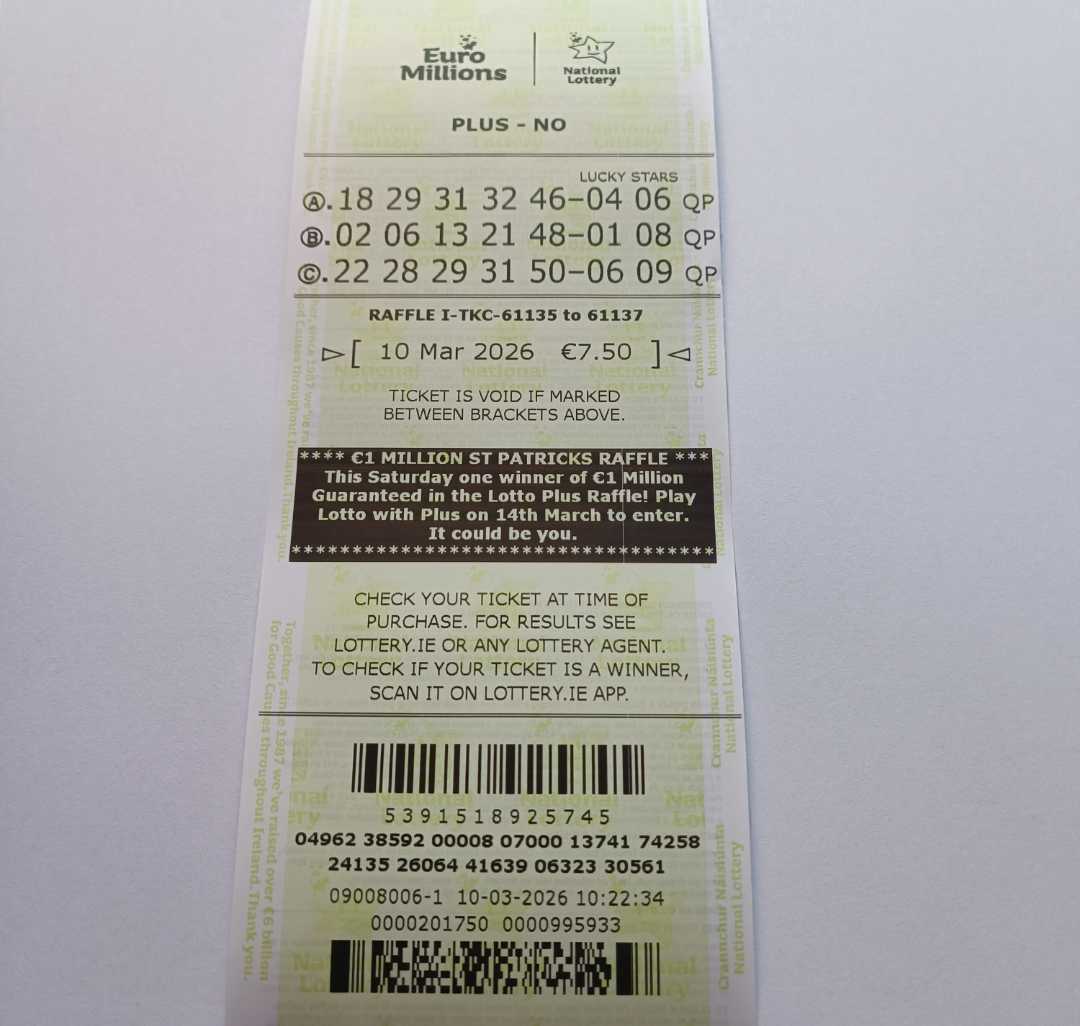 For wins over €10,000, we will have to meet at the National Lottery Claims Department.
