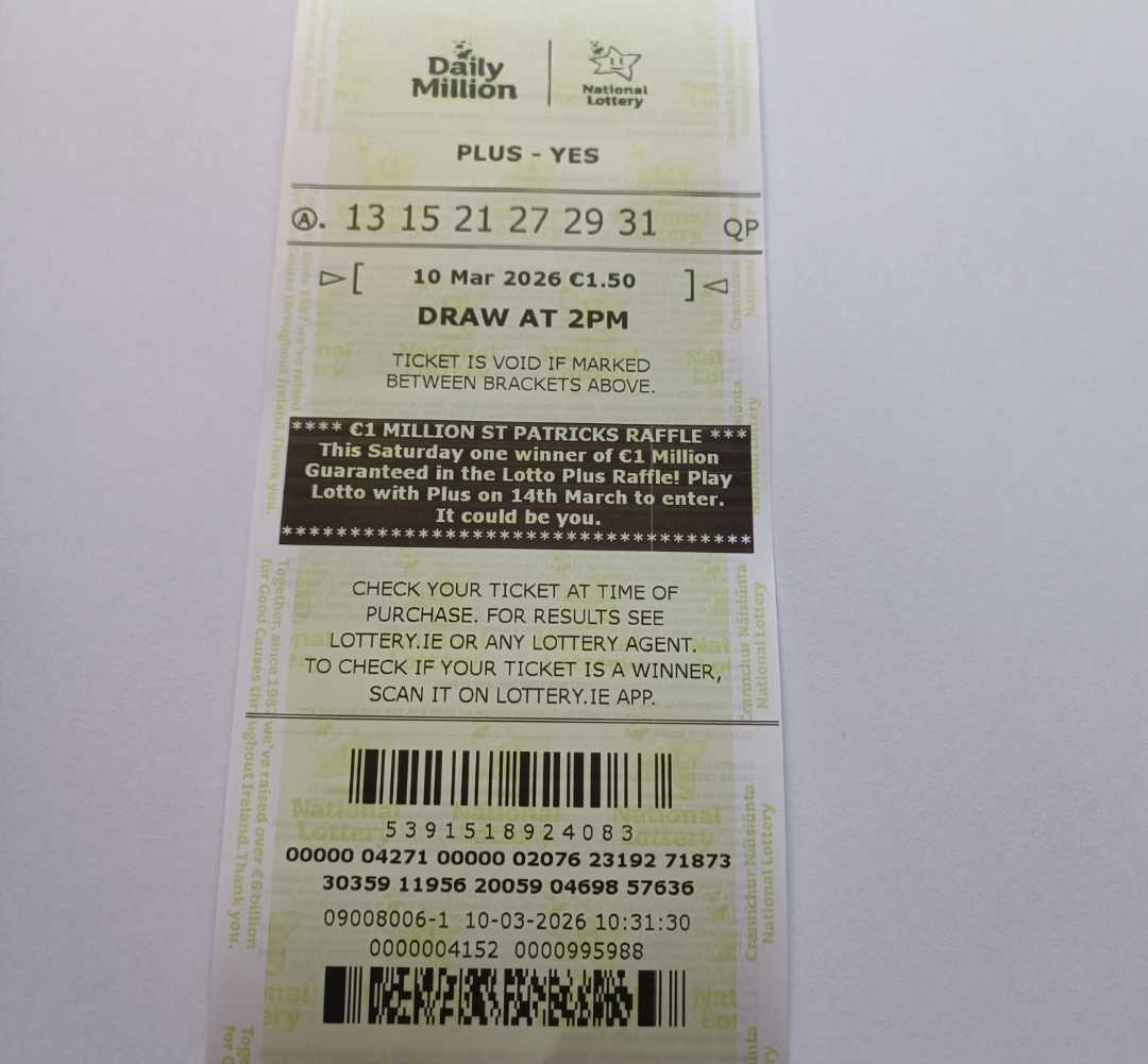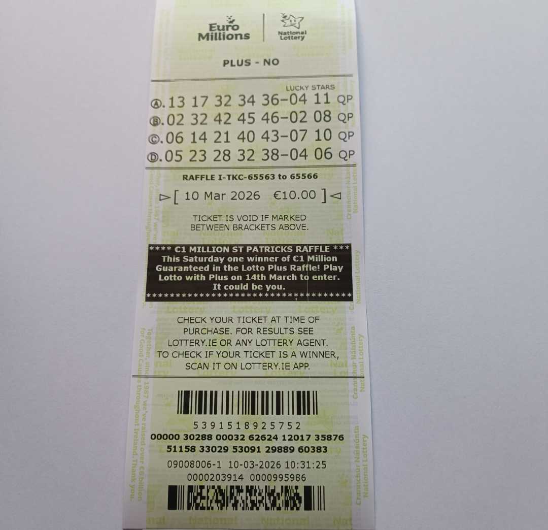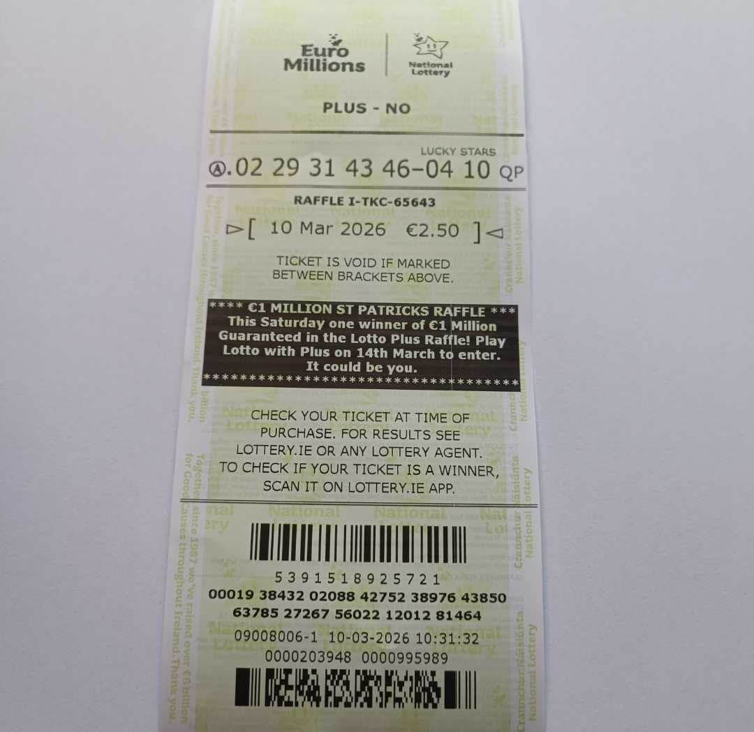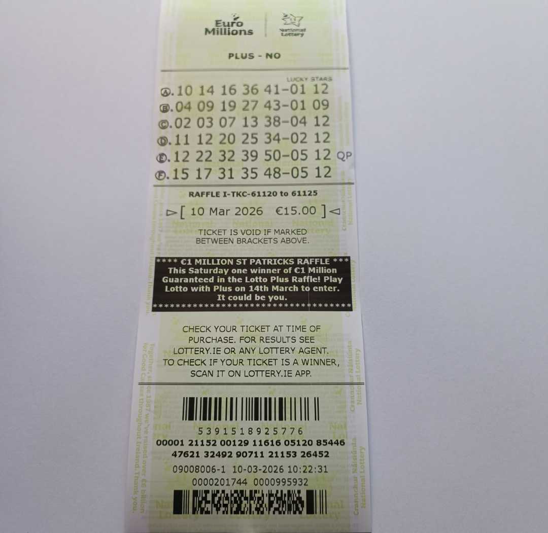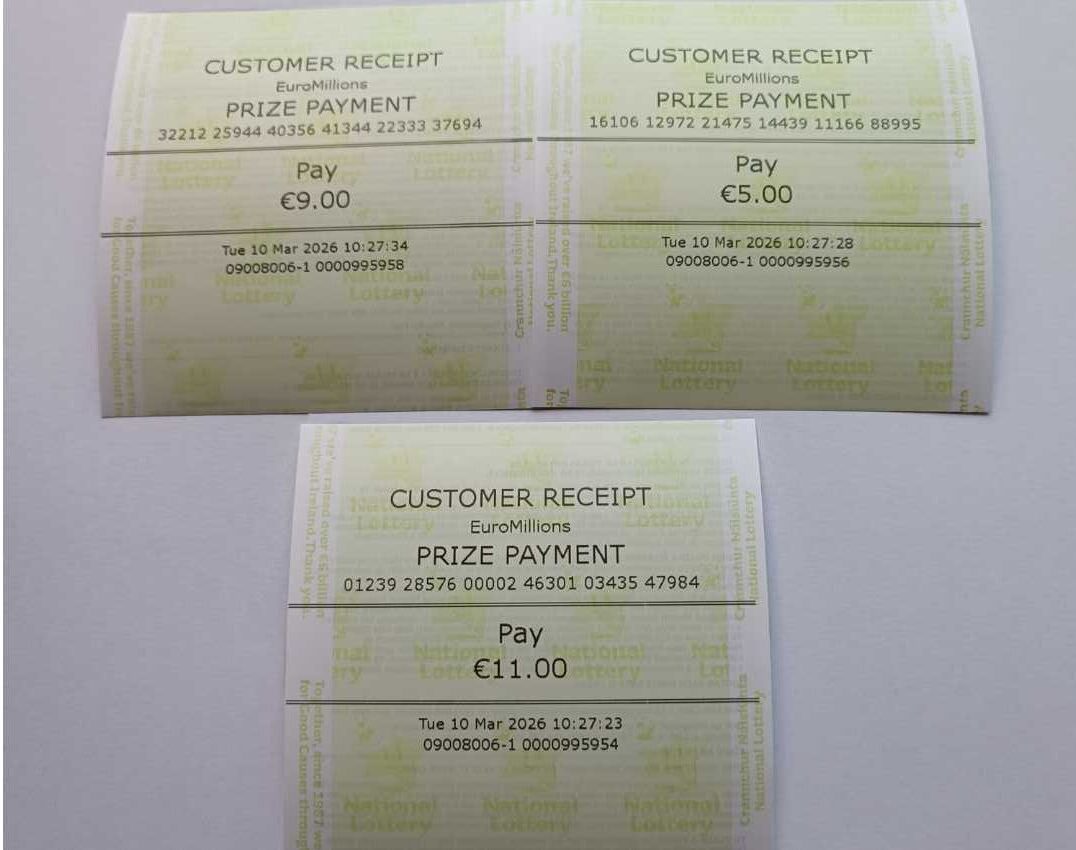 For wins over €10,000, we will have to meet at the National Lottery Claims Department.
