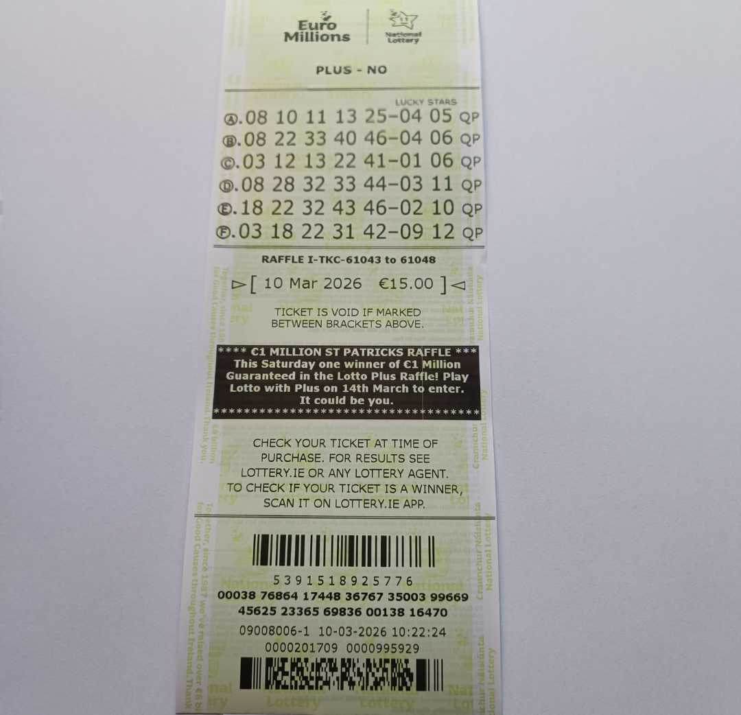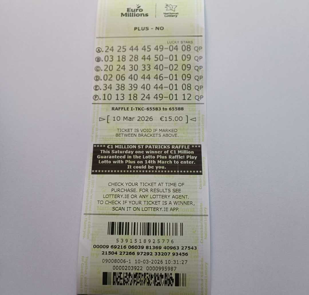We play Euromillions every Tuesday. Please send me the money before Monday as I need time to physically send the tickets to the shop. If you haven’t paid, you don’t play.