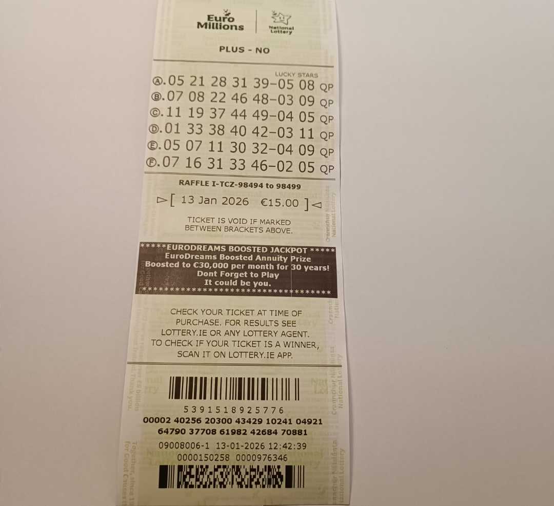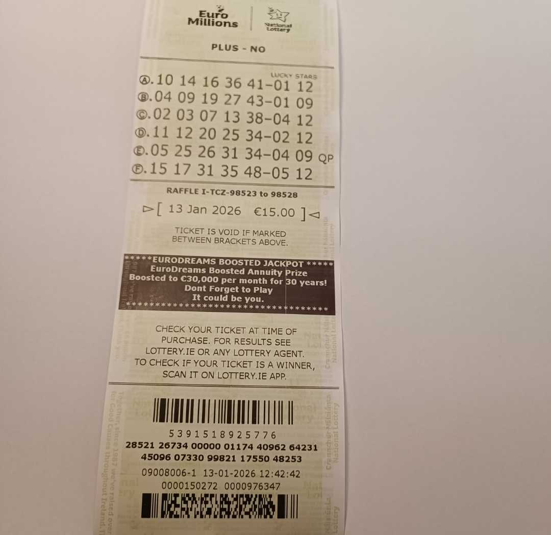 We play Euromillions every Tuesday. Please send me the money before Monday as I need time to physically send the tickets to the shop. If you haven’t paid, you don’t play.