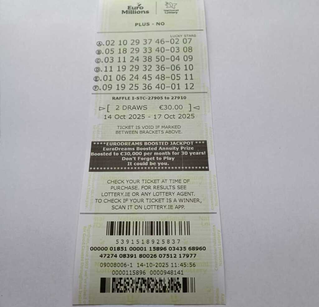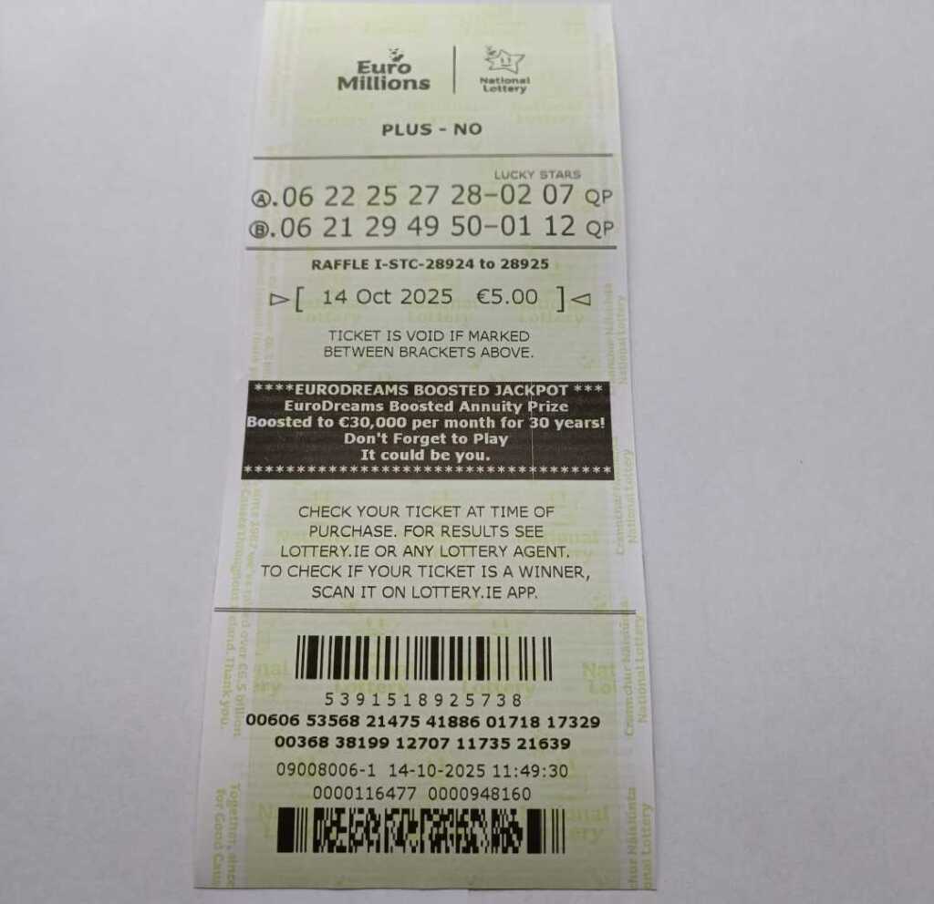 For wins over €10,000, we will have to meet at the National Lottery Claims Department.