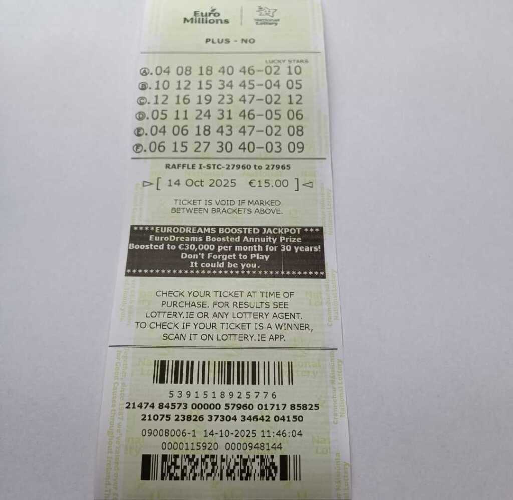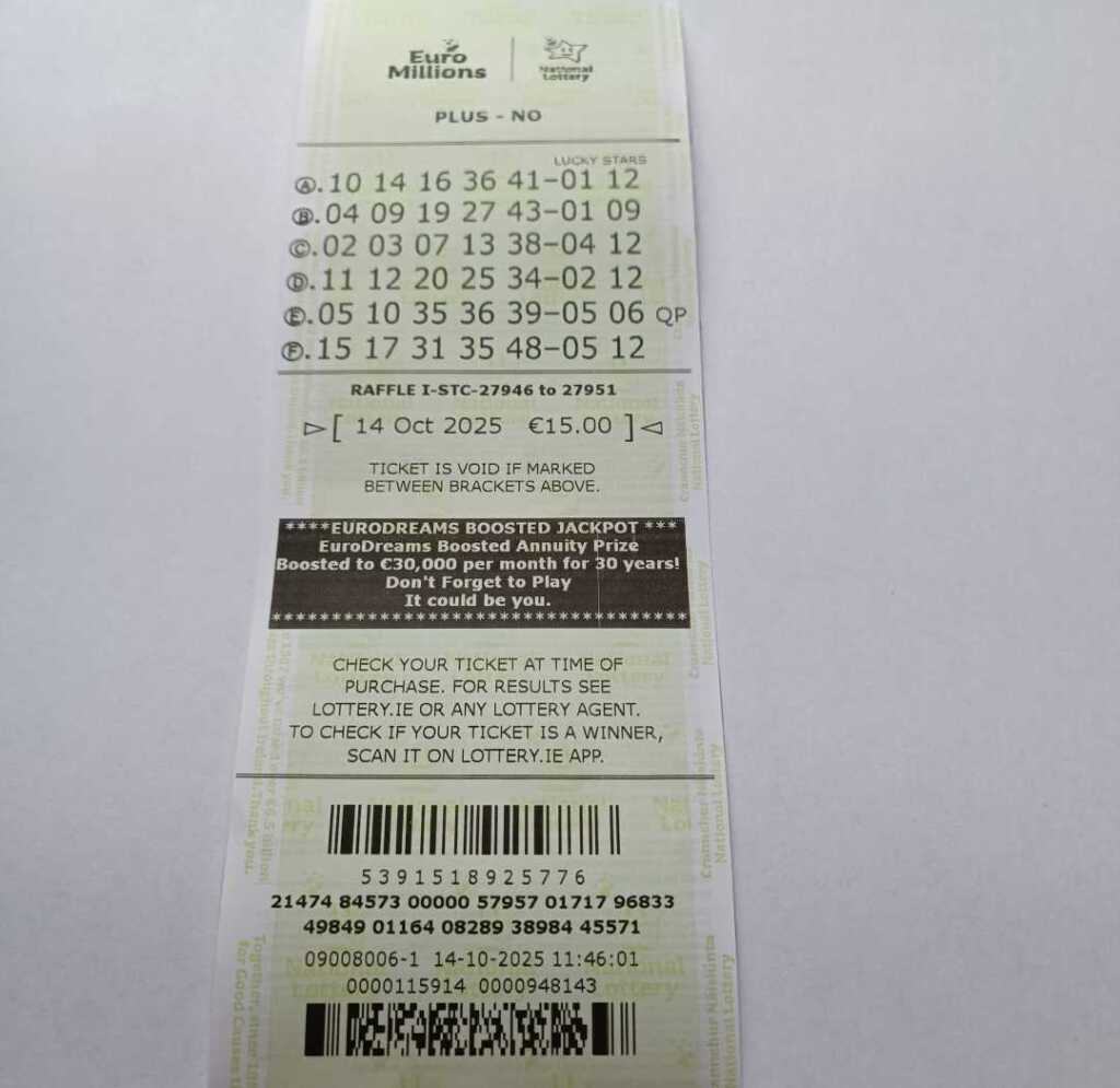 We play Euromillions every Tuesday. Please send me the money before Monday as I need time to physically send the tickets to the shop. If you haven’t paid, you don’t play.