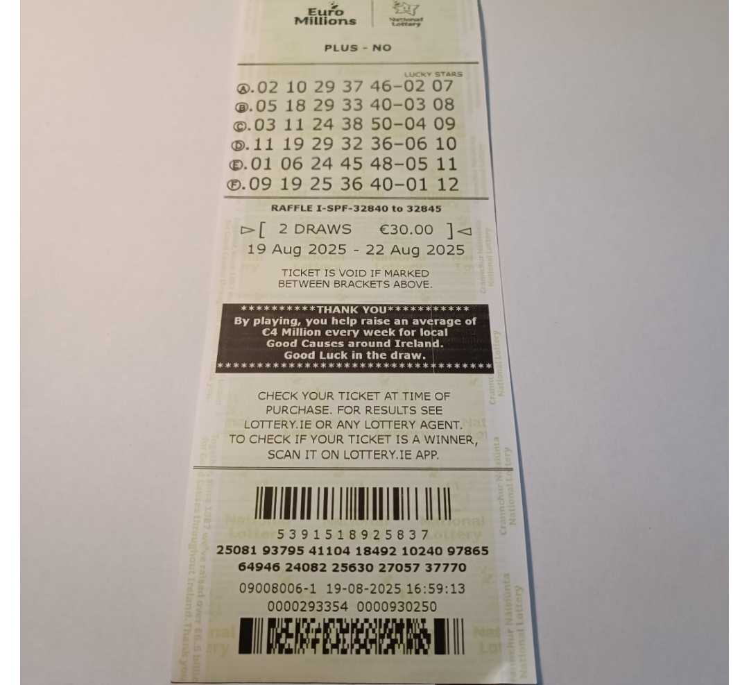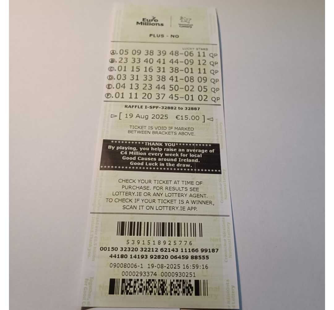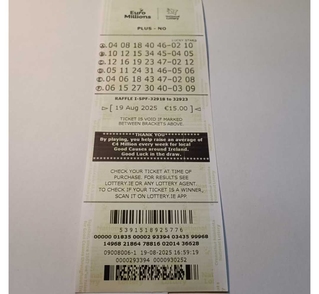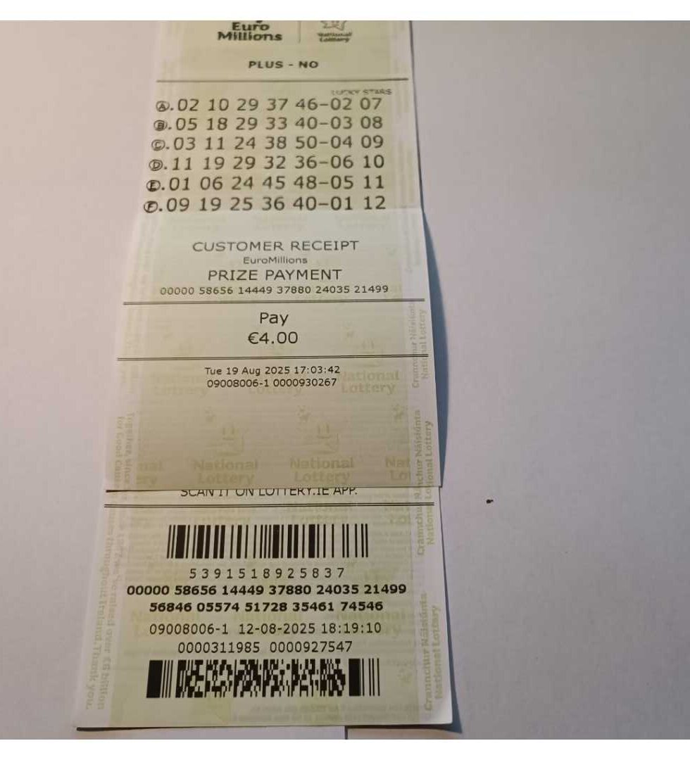 We play Euromillions every Tuesday. Please send me the money before Monday as I need time to physically send the tickets to the shop. If you haven’t paid, you don’t play.