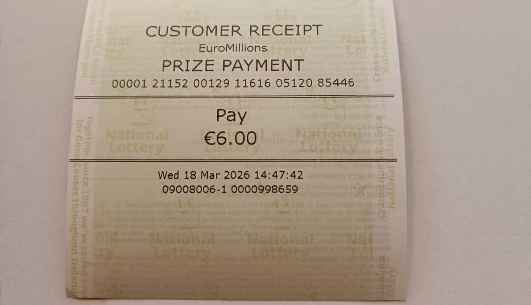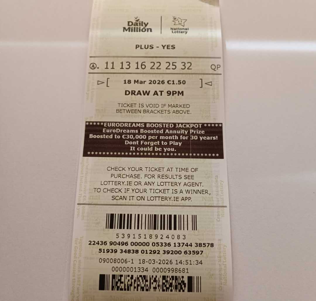 For wins over €10,000, we will have to meet at the National Lottery Claims Department.