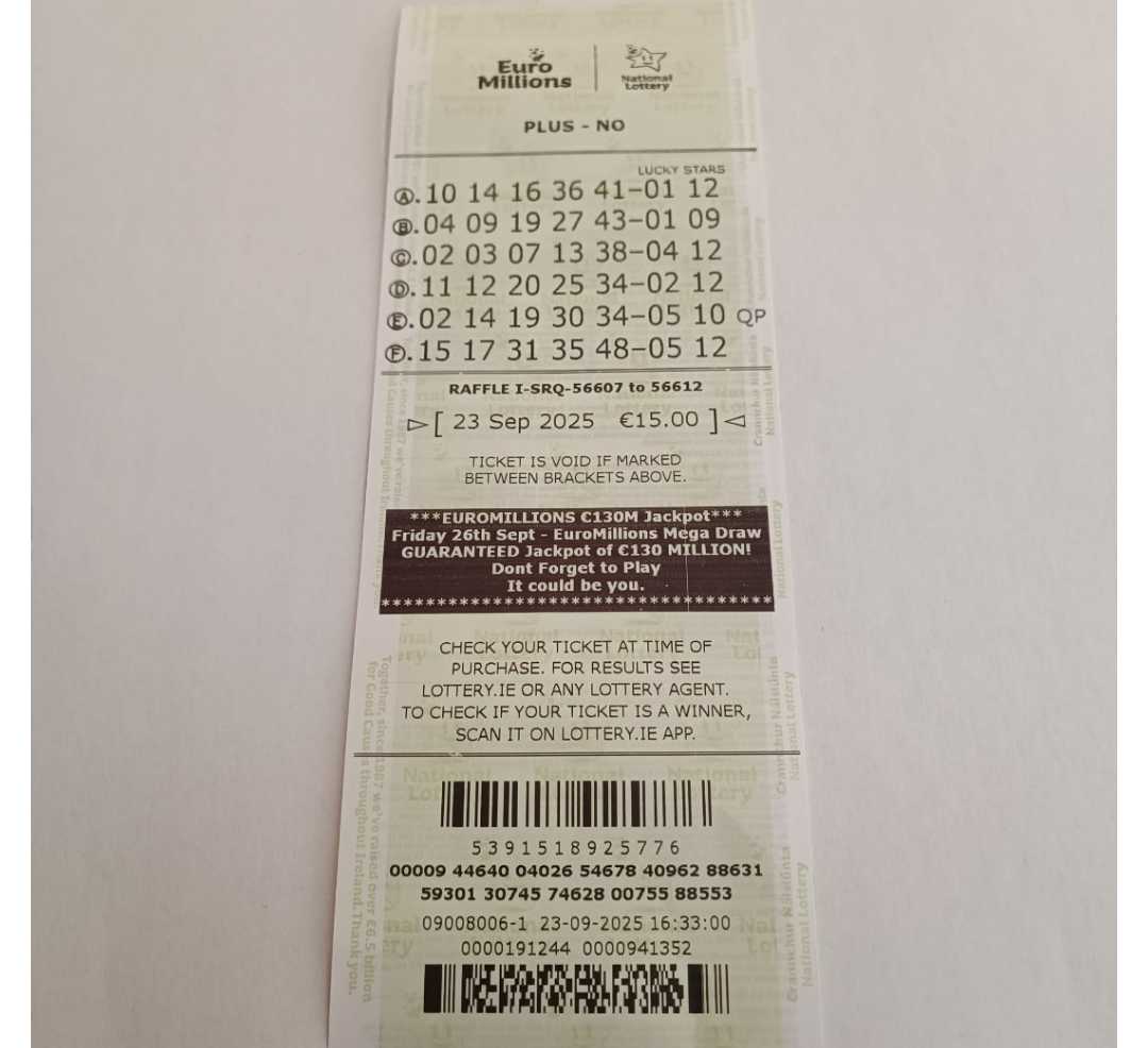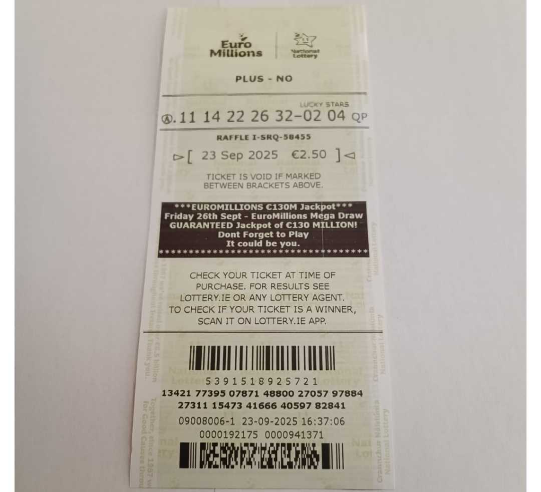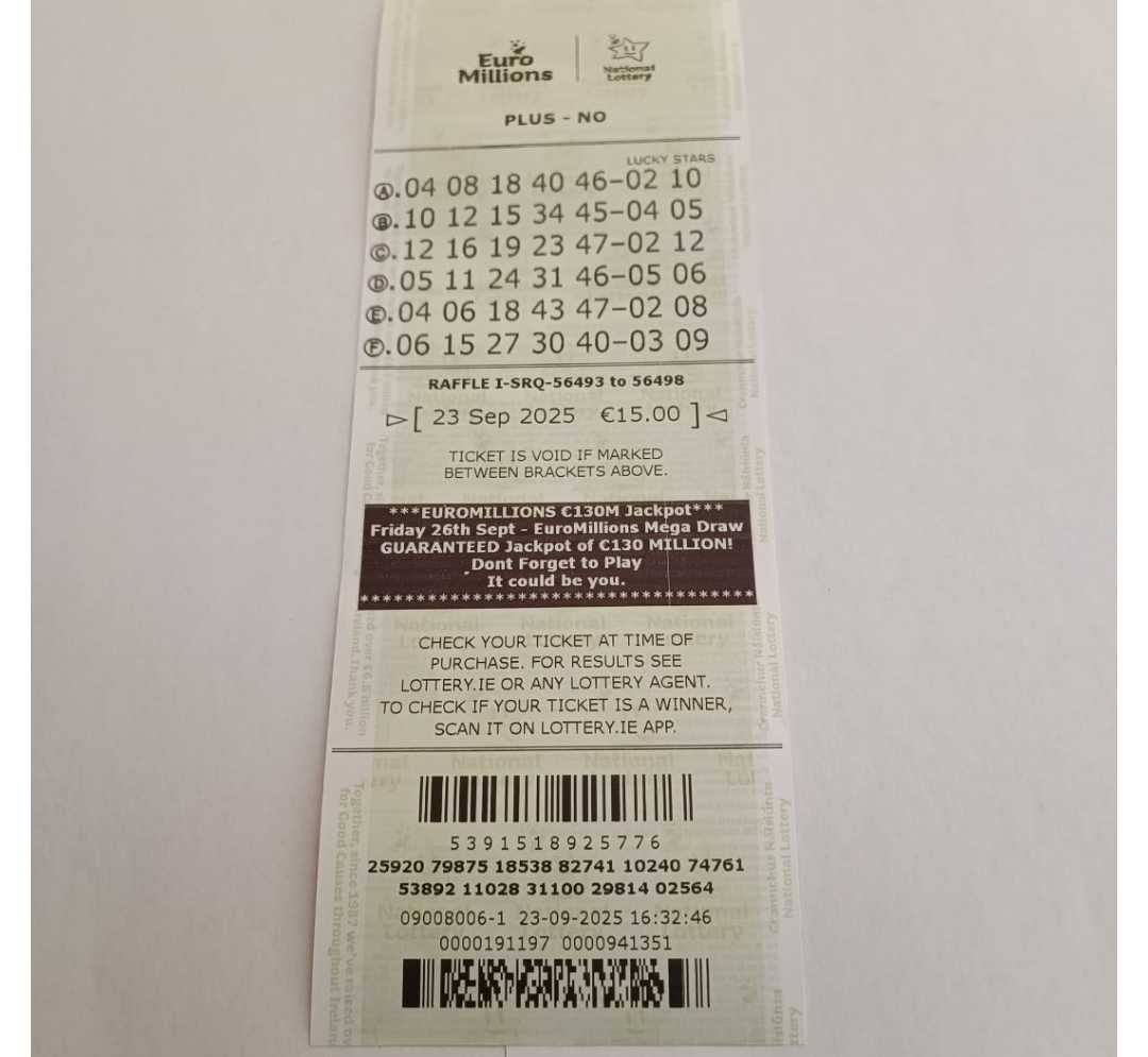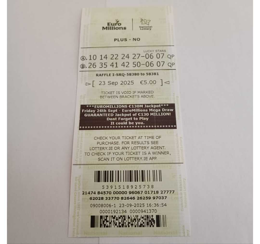 We play Euromillions every Tuesday. Please send me the money before Monday as I need time to physically send the tickets to the shop. If you haven’t paid, you don’t play.