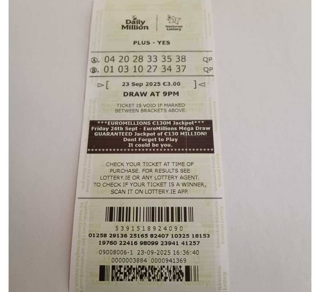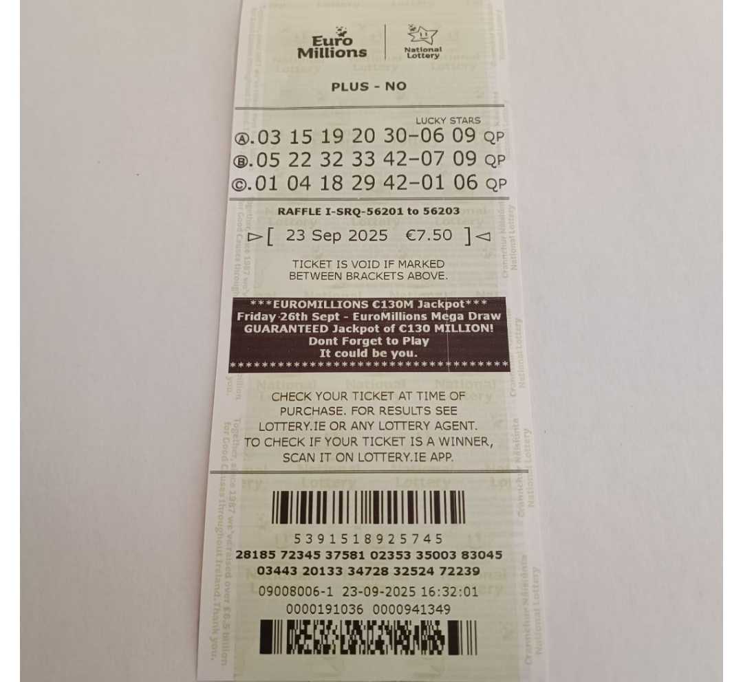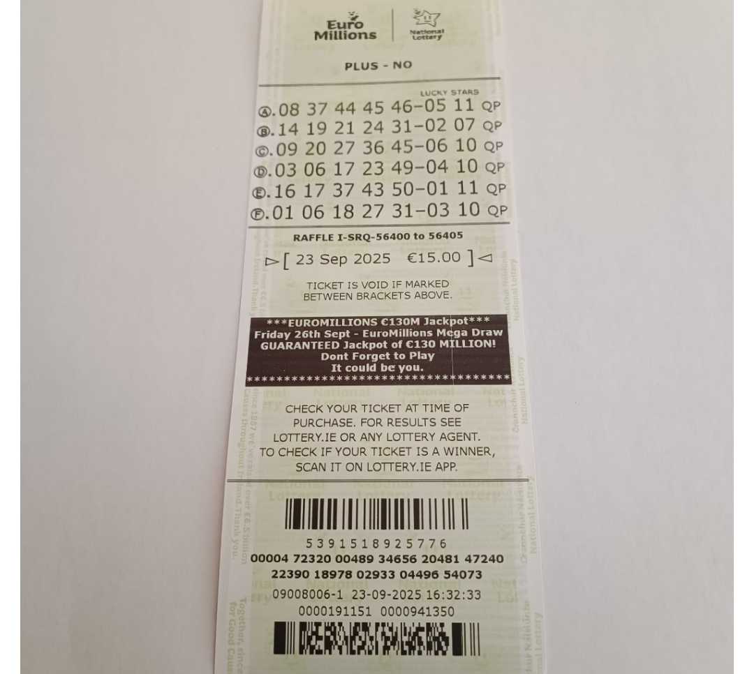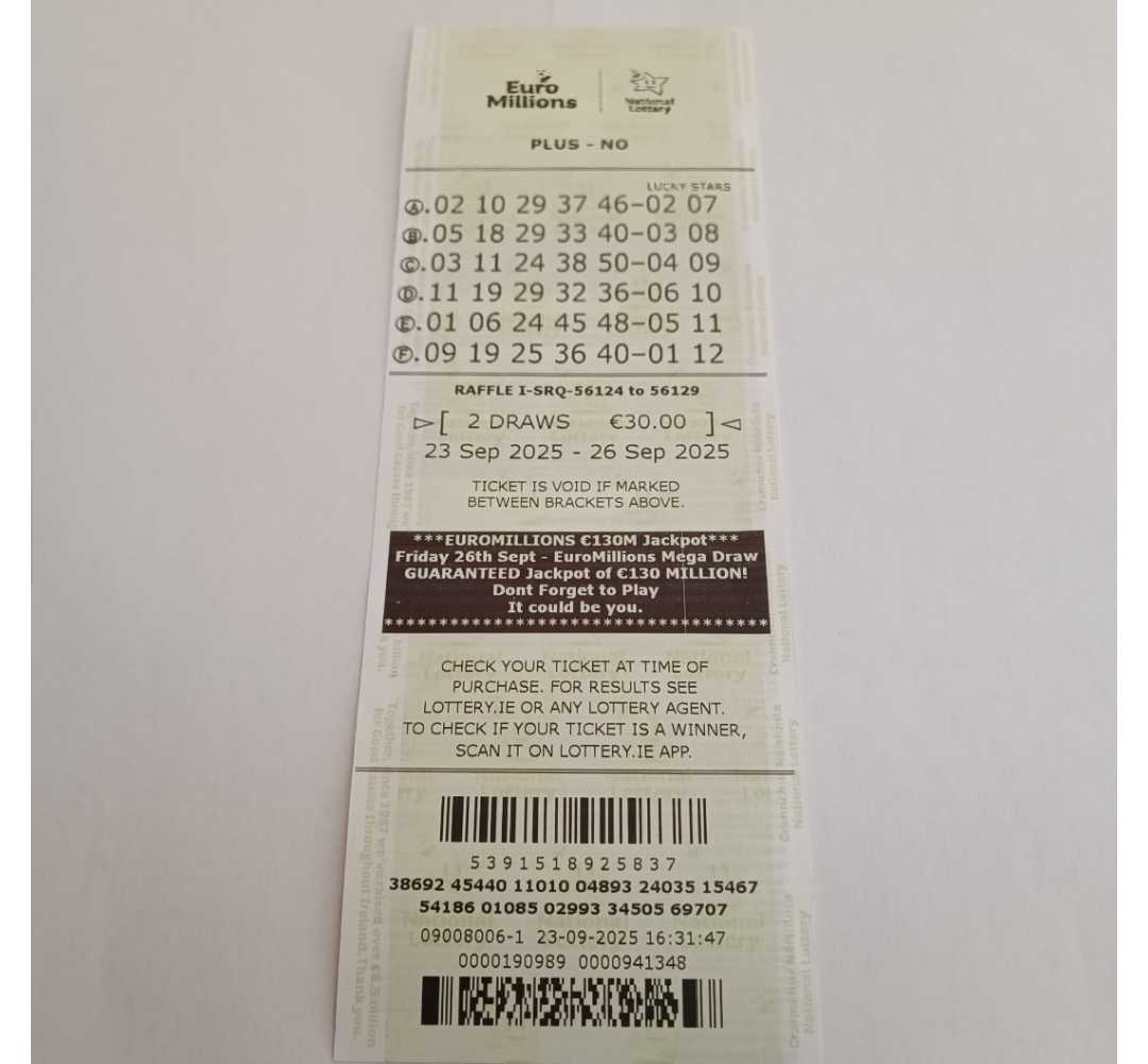 We play Euromillions every Tuesday. Please send me the money before Monday as I need time to physically send the tickets to the shop. If you haven’t paid, you don’t play.