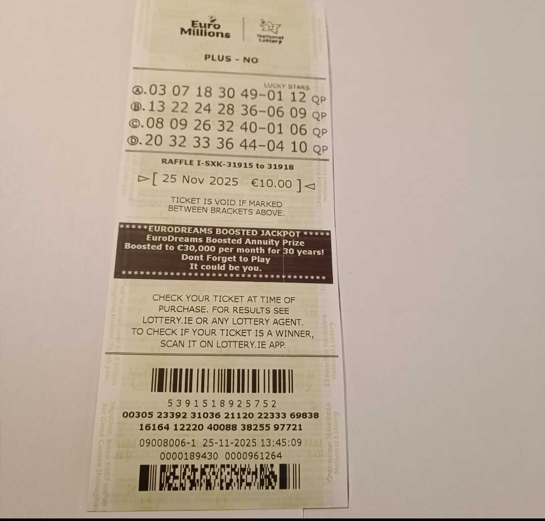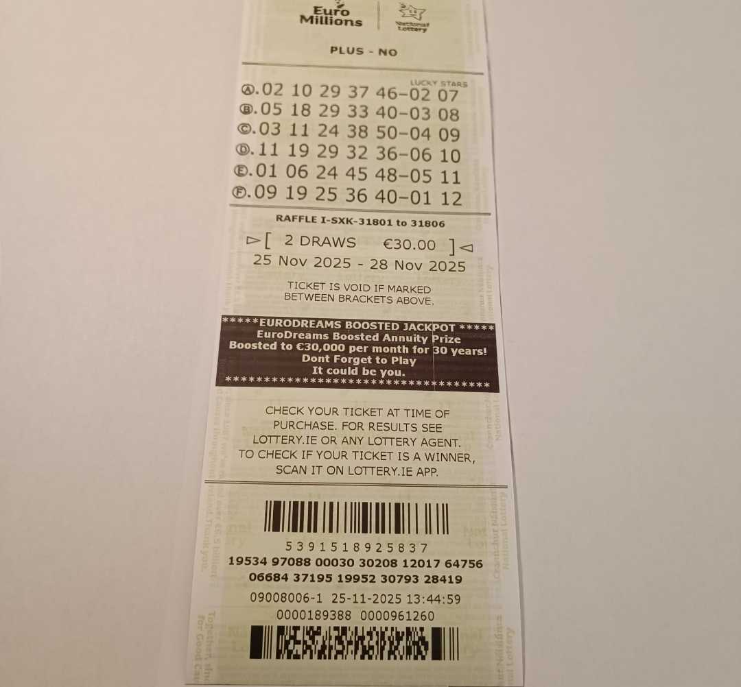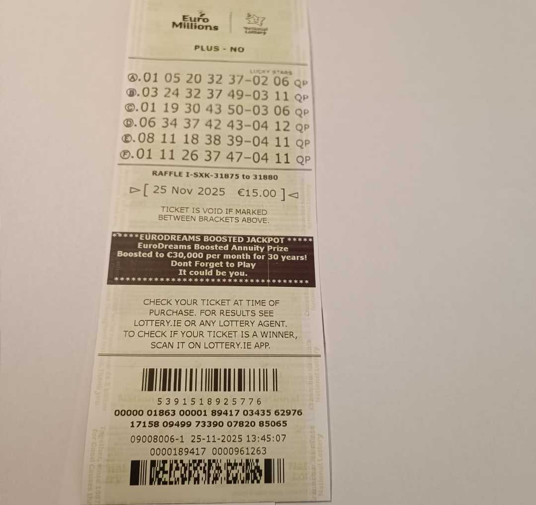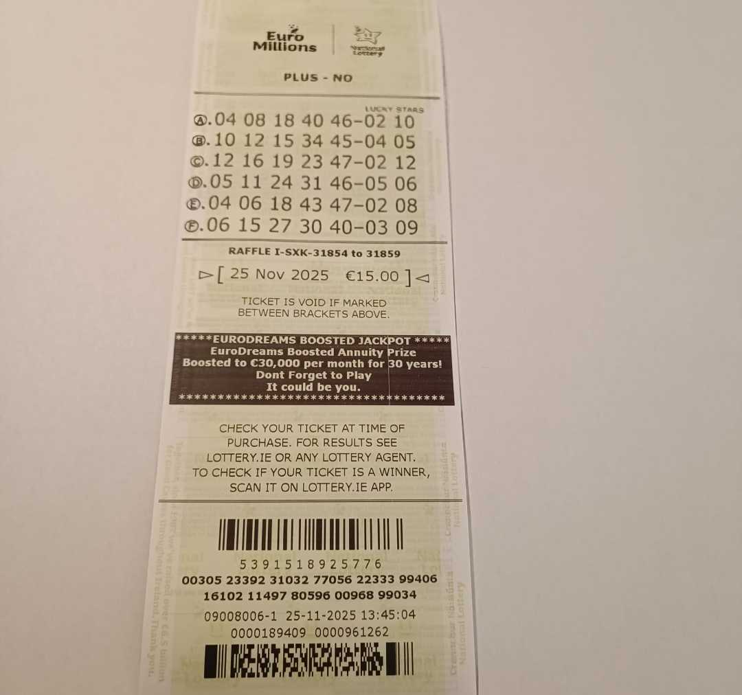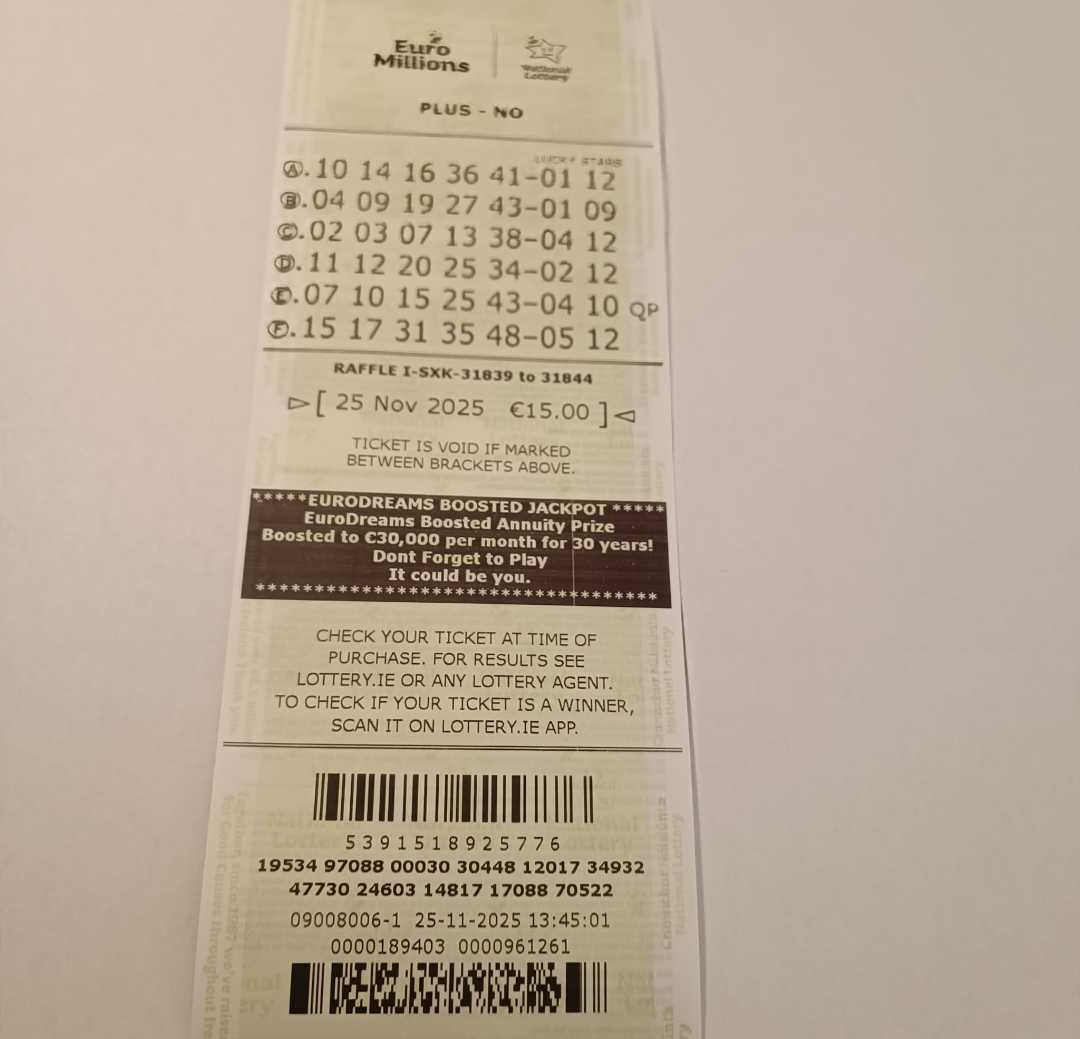 We play Euromillions every Tuesday. Please send me the money before Monday as I need time to physically send the tickets to the shop. If you haven’t paid, you don’t play.