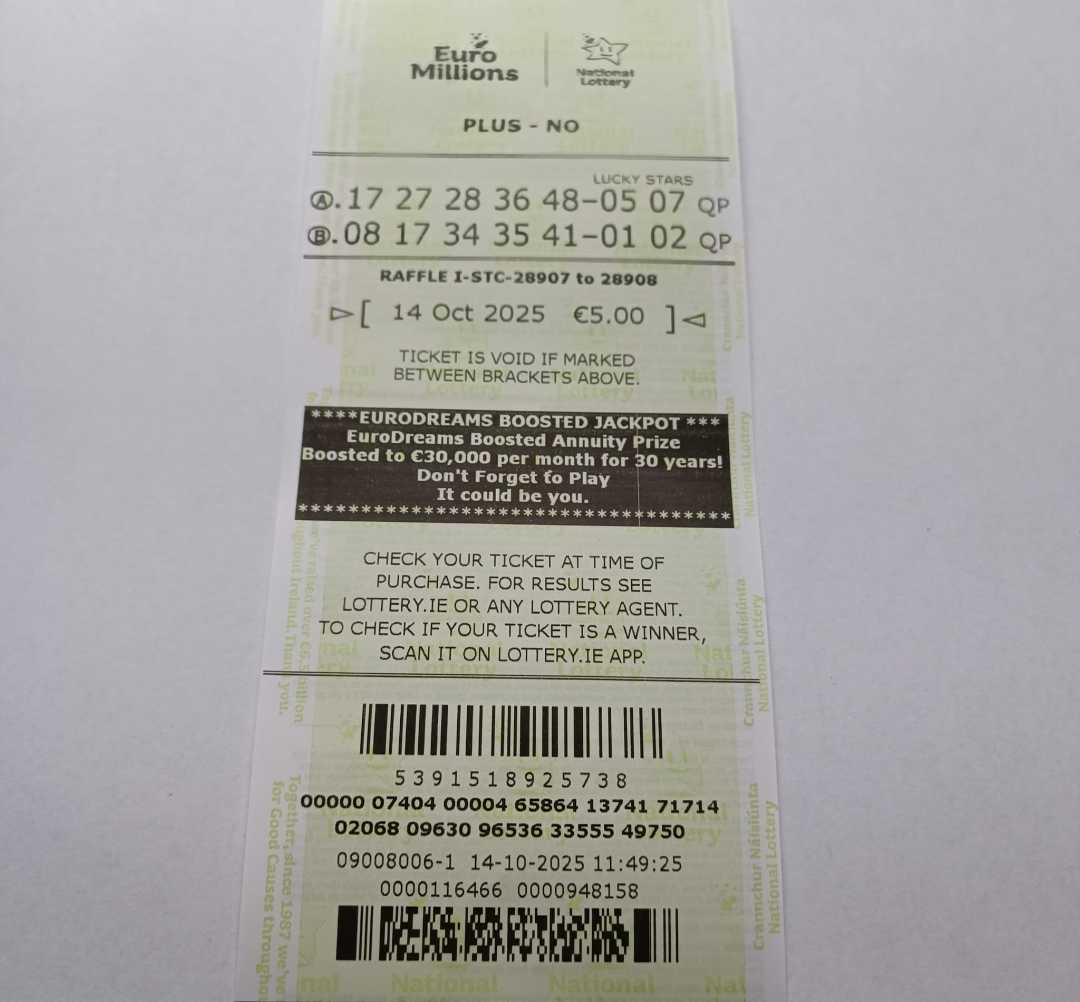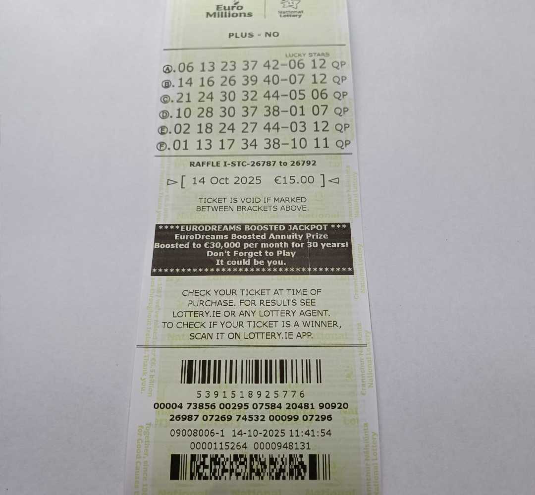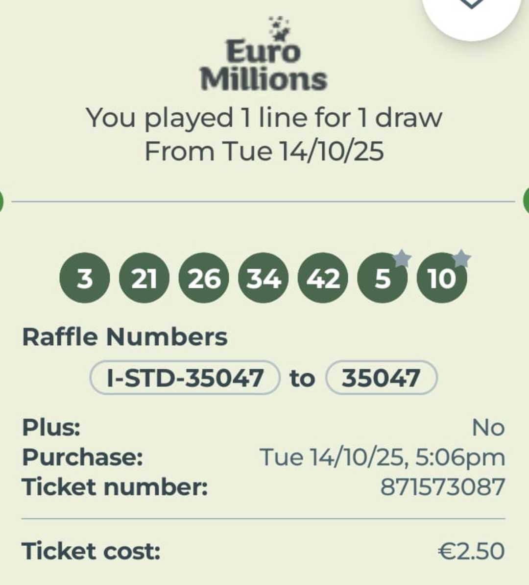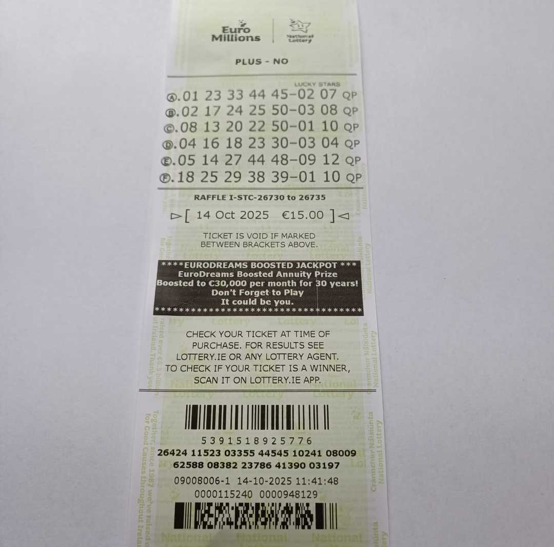 We play Euromillions every Tuesday. Please send me the money before Monday as I need time to physically send the tickets to the shop. If you haven’t paid, you don’t play.