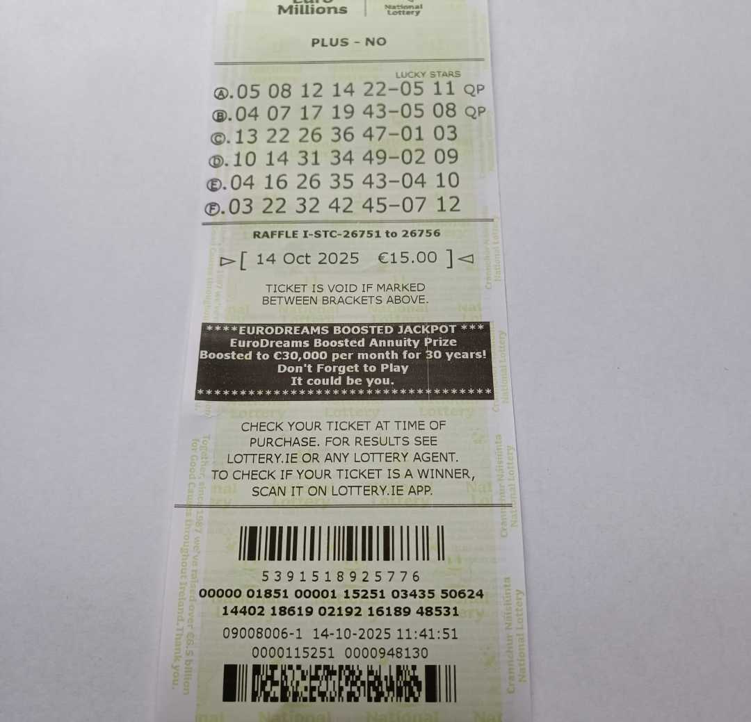 For wins over €10,000, we will have to meet at the National Lottery Claims Department.