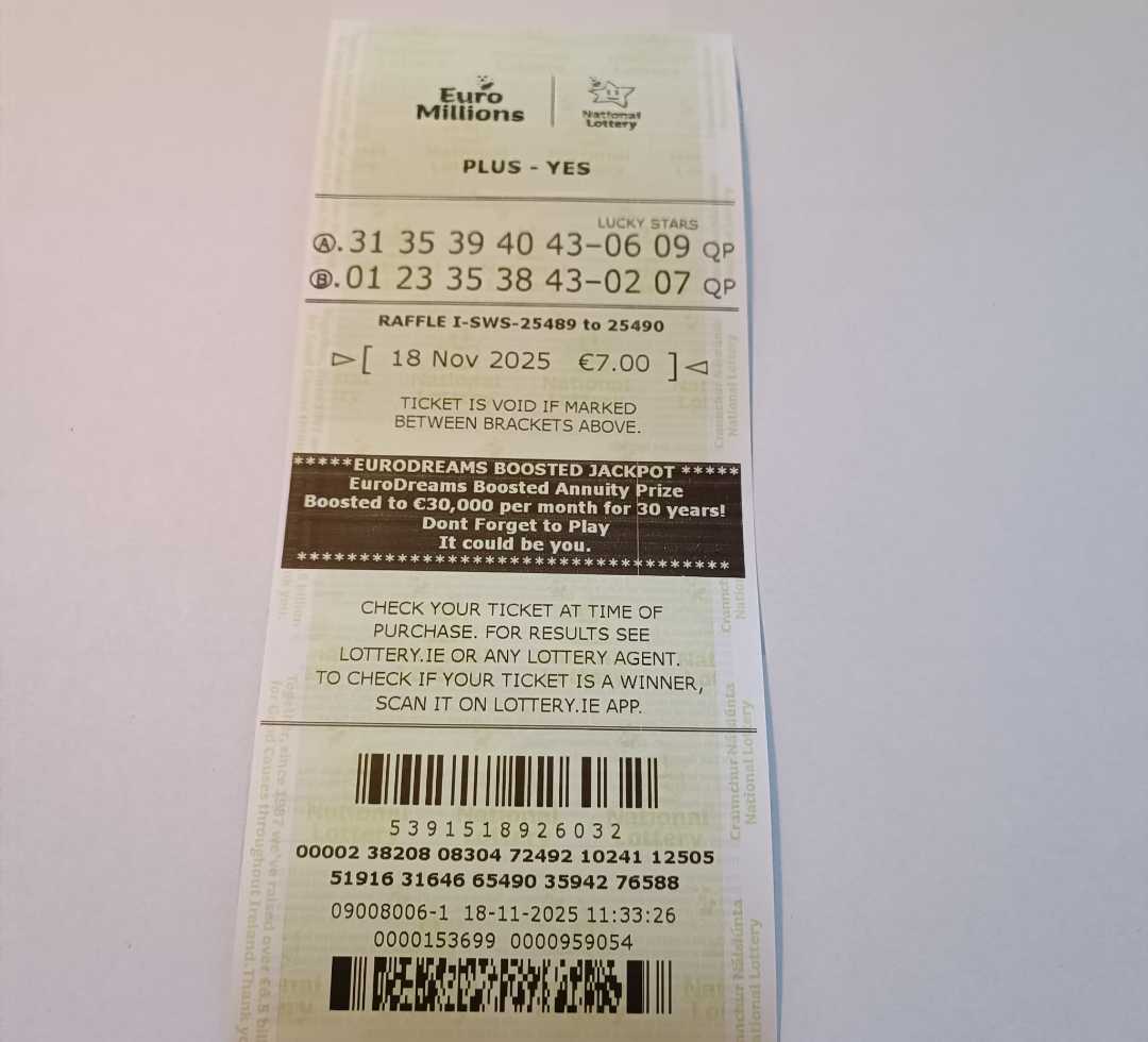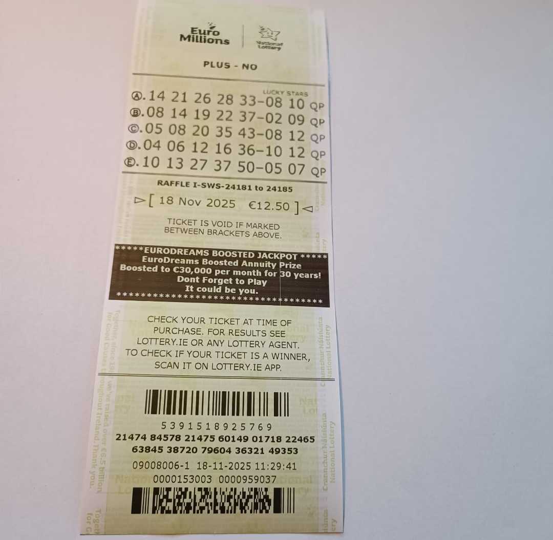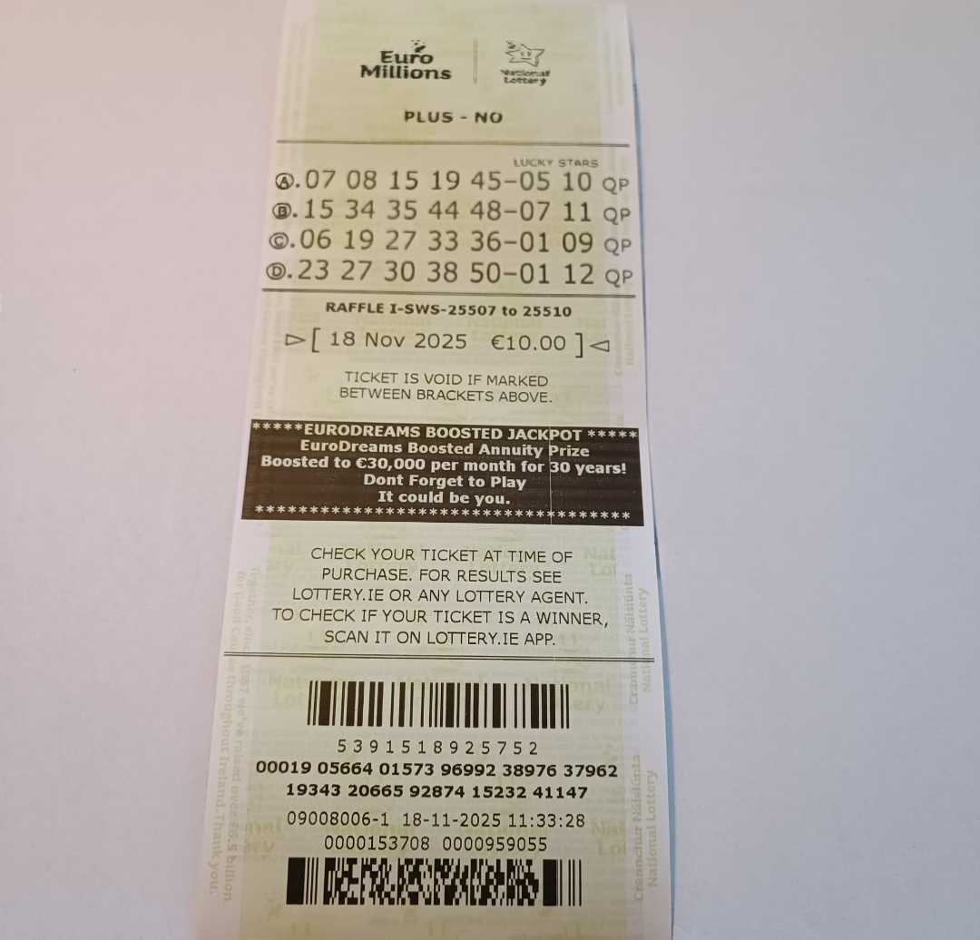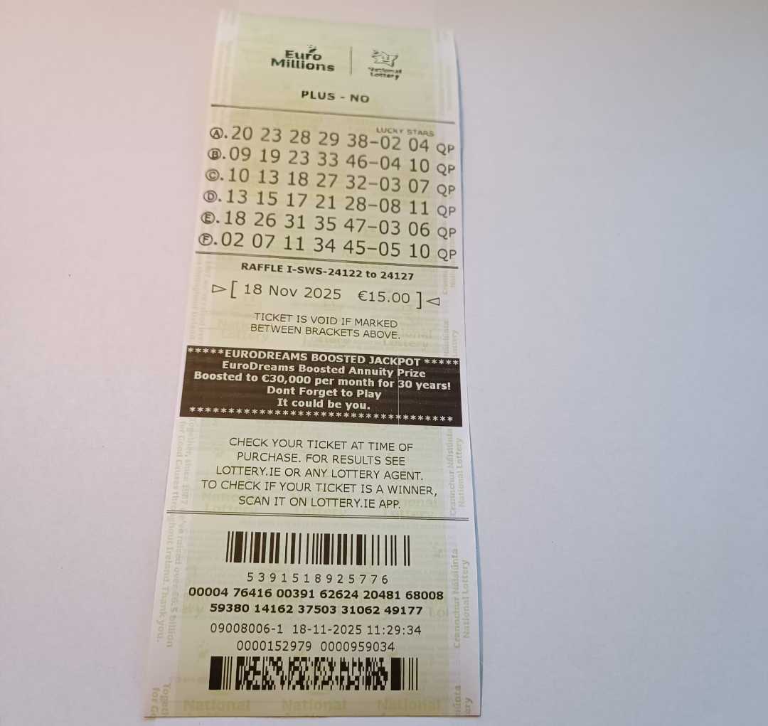 For wins over €10,000, we will have to meet at the National Lottery Claims Department.