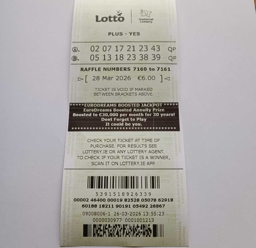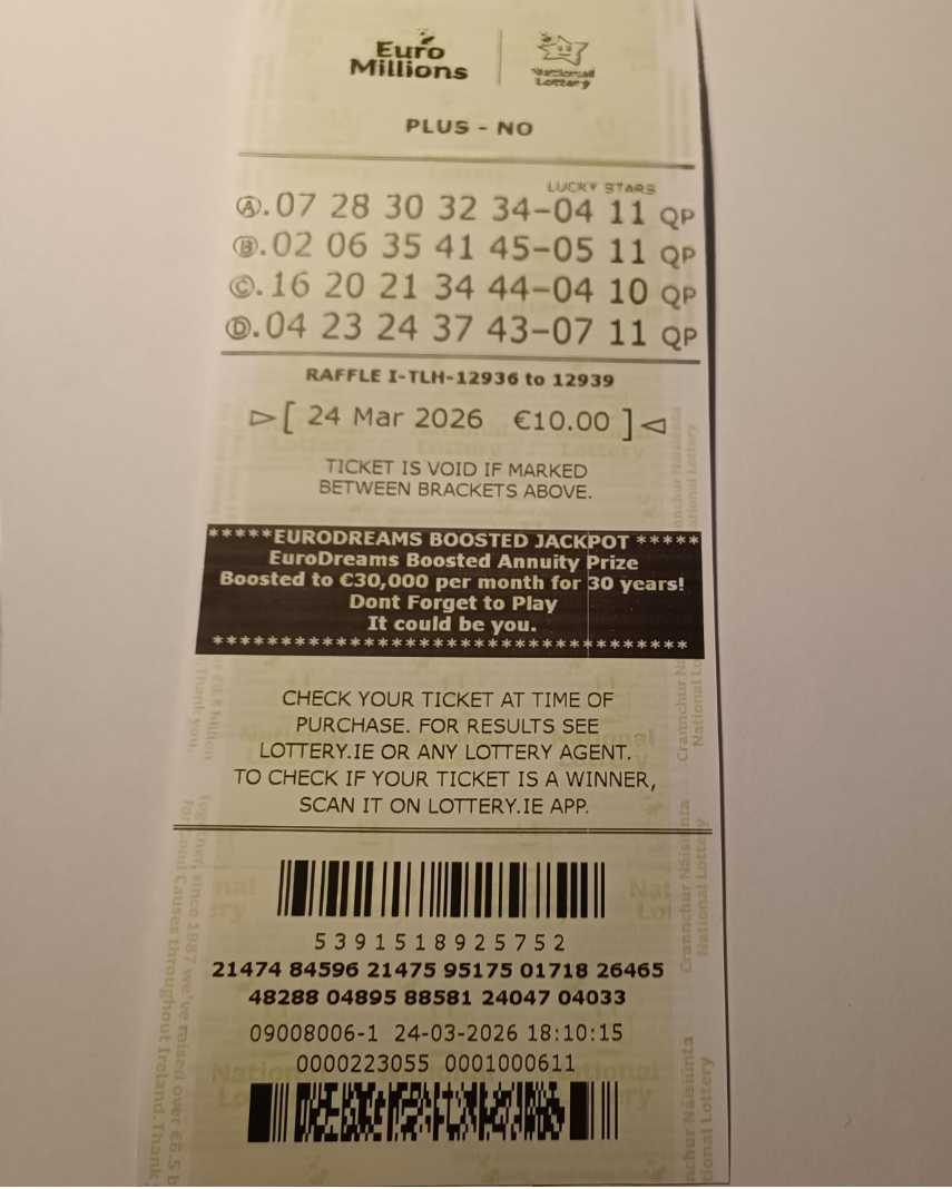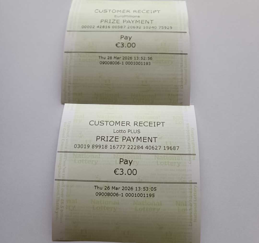 For wins over €10,000, we will have to meet at the National Lottery Claims Department.
