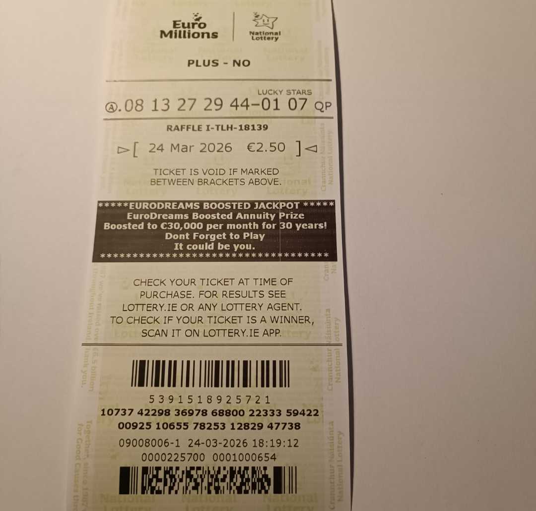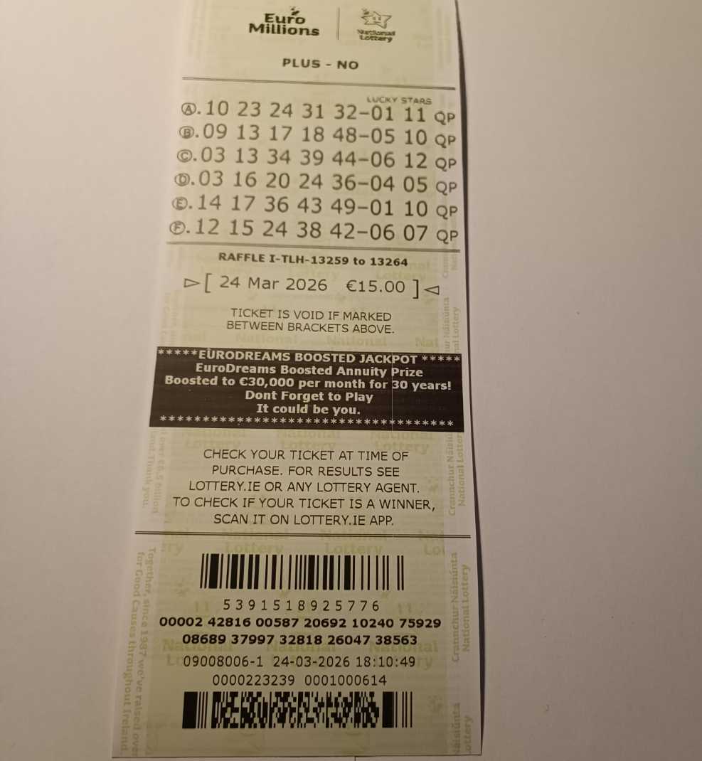 We play Euromillions every Tuesday. Please send me the money before Monday as I need time to physically send the tickets to the shop. If you haven’t paid, you don’t play.