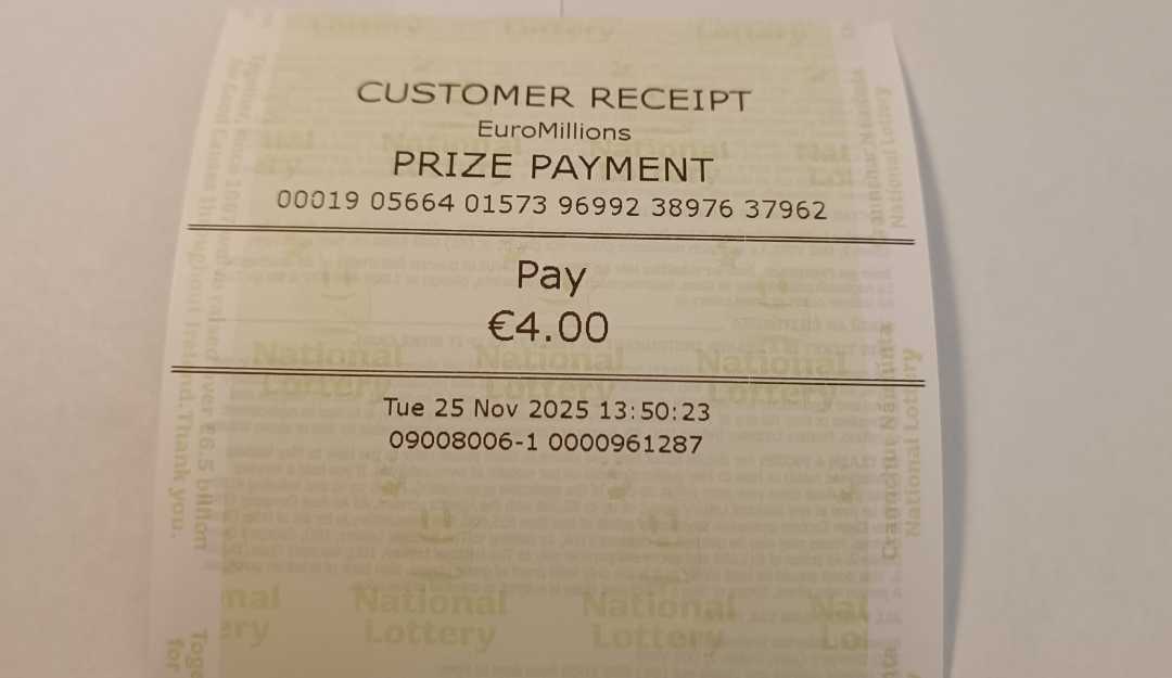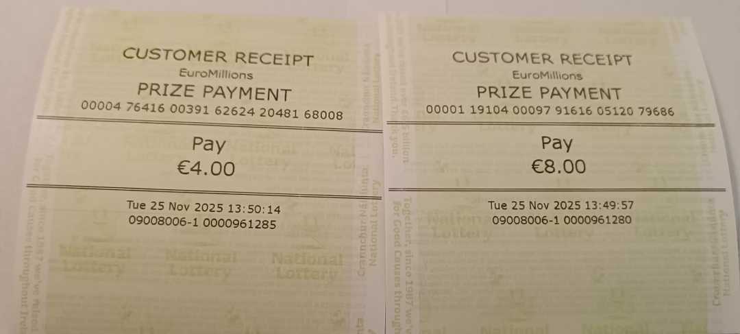 For wins over €10,000, we will have to meet at the National Lottery Claims Department.