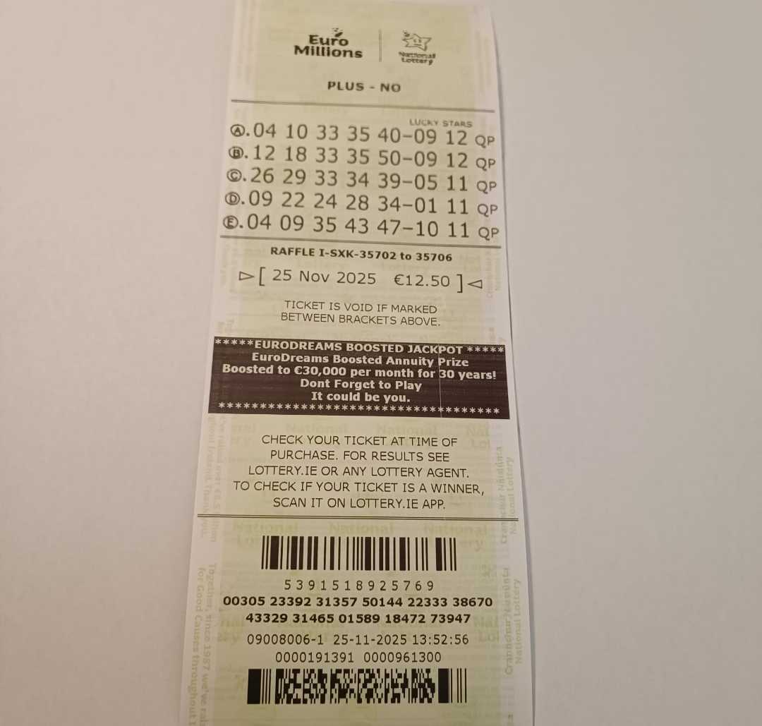 If the win is below €500, I will buy more tickets for your syndicate for future draws.