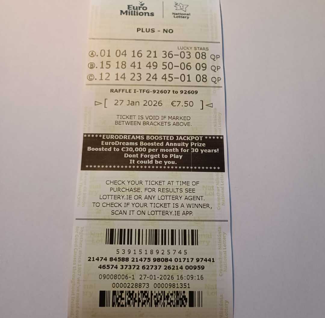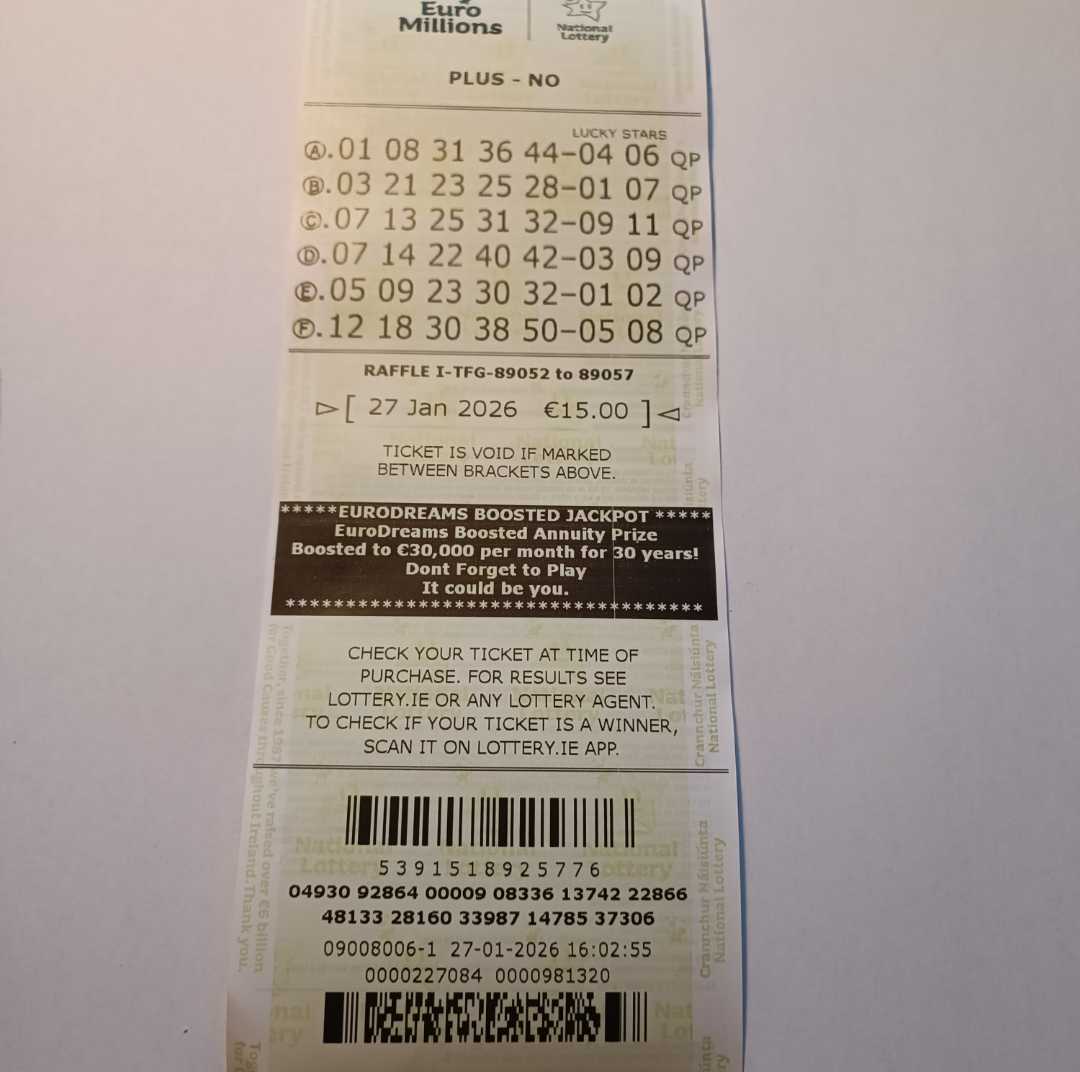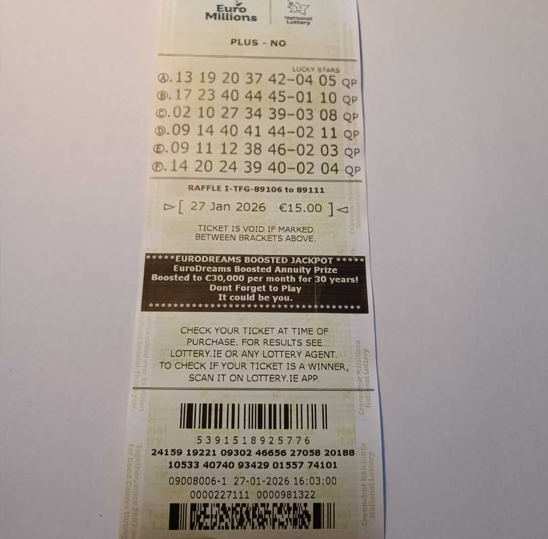 We play Euromillions every Tuesday. Please send me the money before Monday as I need time to physically send the tickets to the shop. If you haven’t paid, you don’t play.