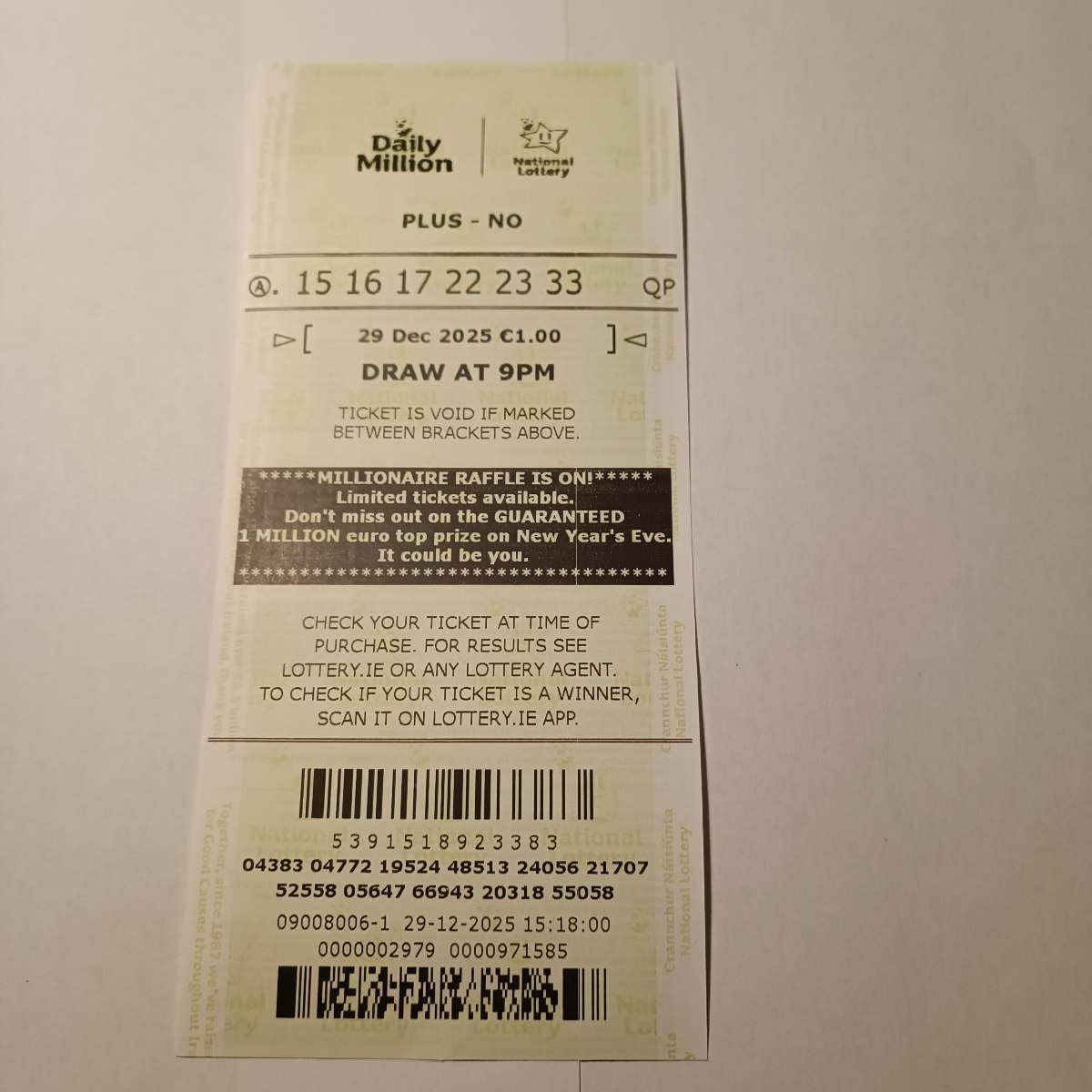 For wins over €10,000, we will have to meet at the National Lottery Claims Department.