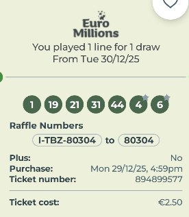 Lotto Winners Euromillion Syndicate Draw 30Dec25: