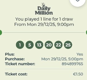 Only €2.5 per week. I suggest setting up a recurring transfer for €2.5 to ensure you don’t miss any chances to win the Jackpot with us. You probably spend more on coffee or beer, but they don’t offer you the opportunity to set yourself up for life like playing with us does. The decision is entirely up to you.