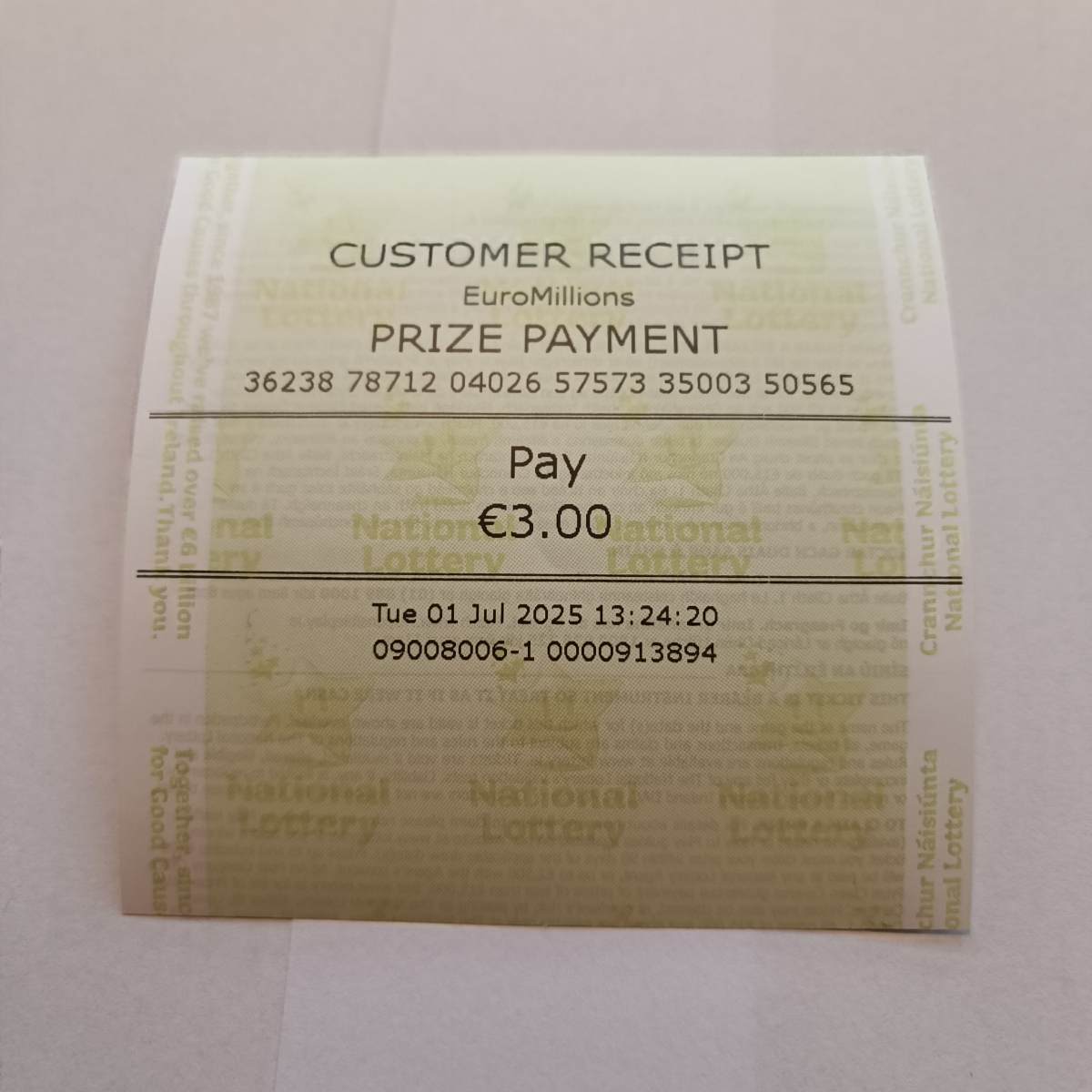 We play Euromillions every Tuesday. Please send me the money before Thursday as I need time to physically send the tickets to the shop. If you haven’t paid, you don’t play.