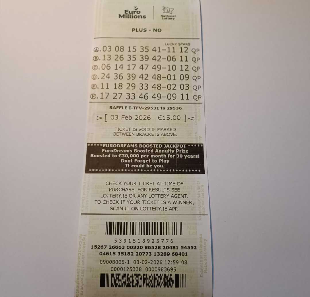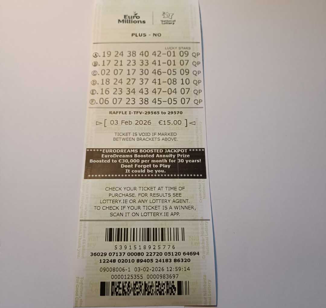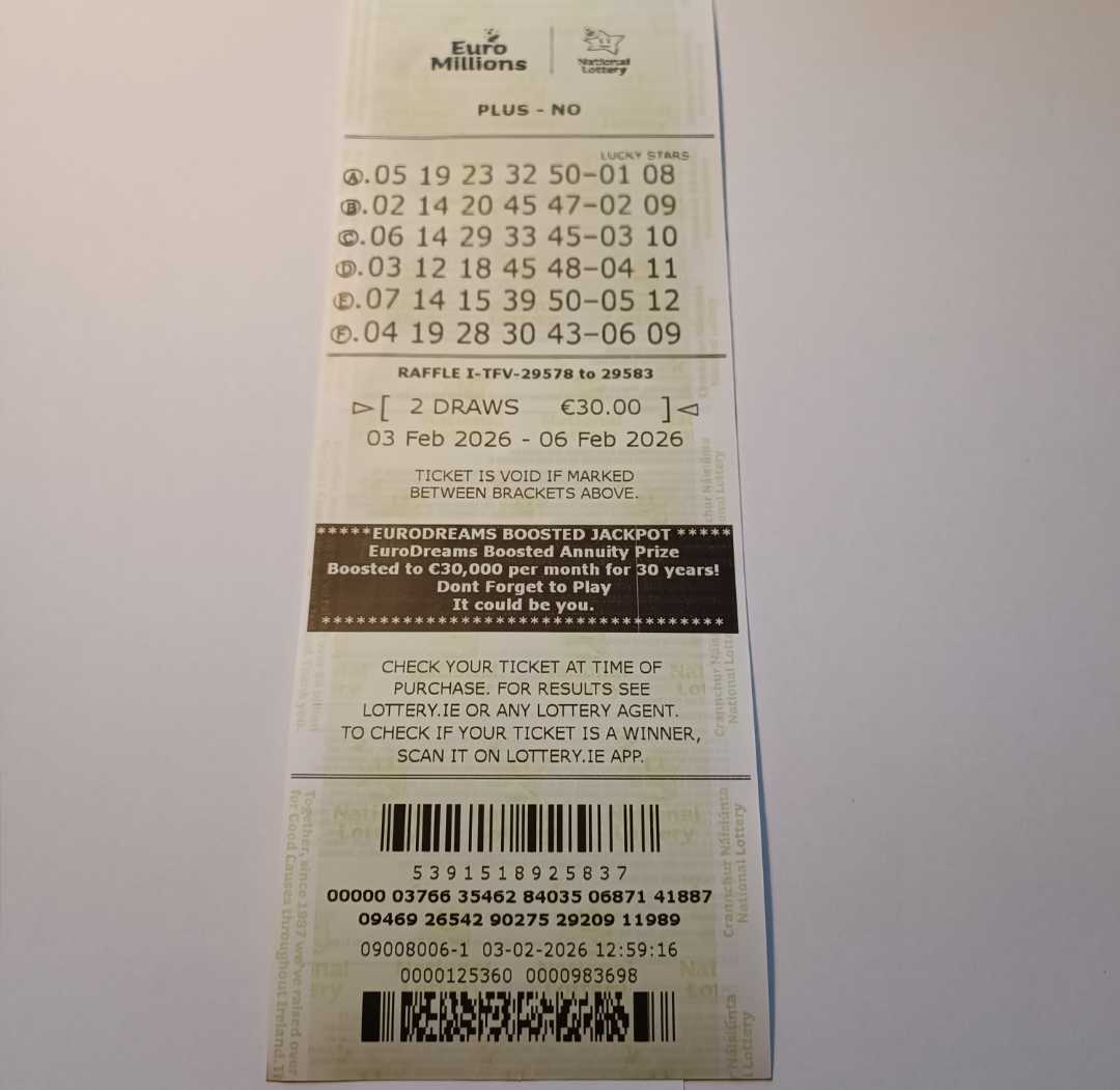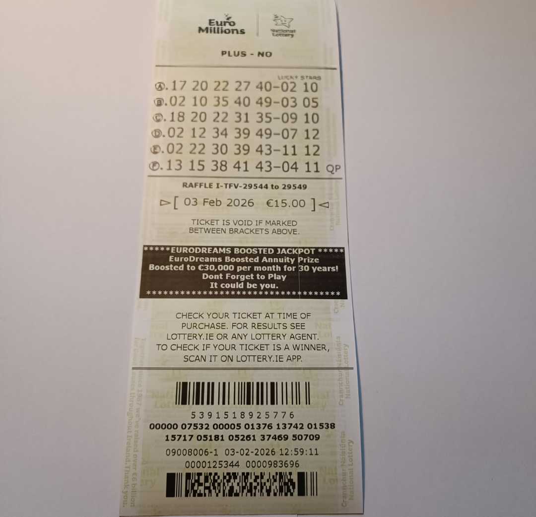 We play Euromillions every Tuesday. Please send me the money before Thursday as I need time to physically send the tickets to the shop. If you haven’t paid, you don’t play.
