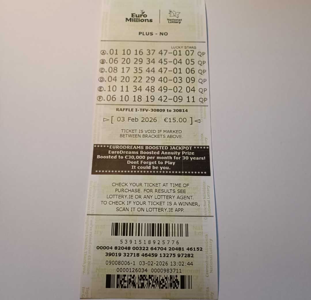 If the win is below €500, I will buy more tickets for your syndicate for future draws.