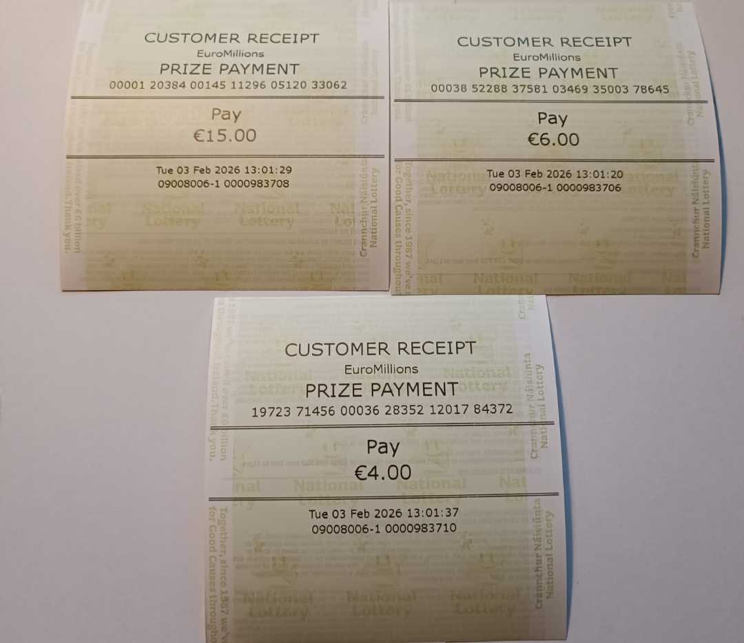 For wins over €10,000, we will have to meet at the National Lottery Claims Department.