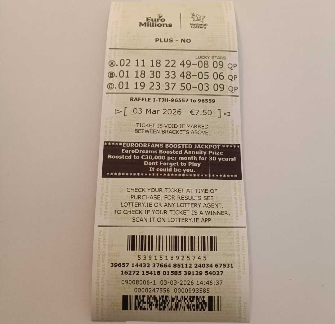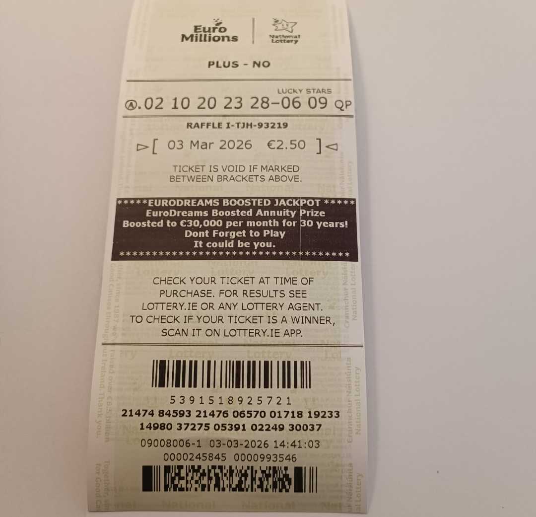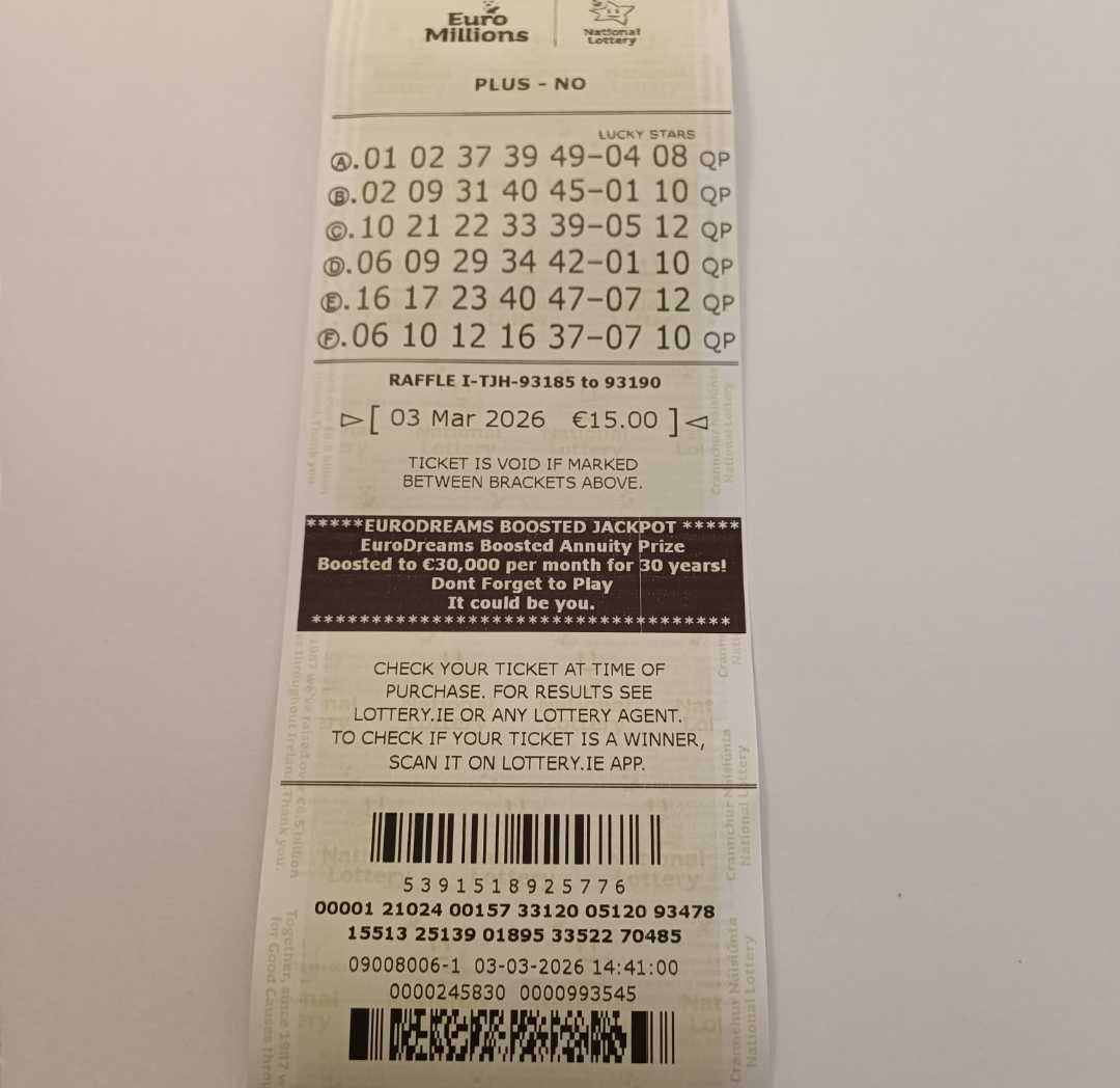 We play Euromillions every Tuesday. Please send me the money before Thursday as I need time to physically send the tickets to the shop. If you haven’t paid, you don’t play.